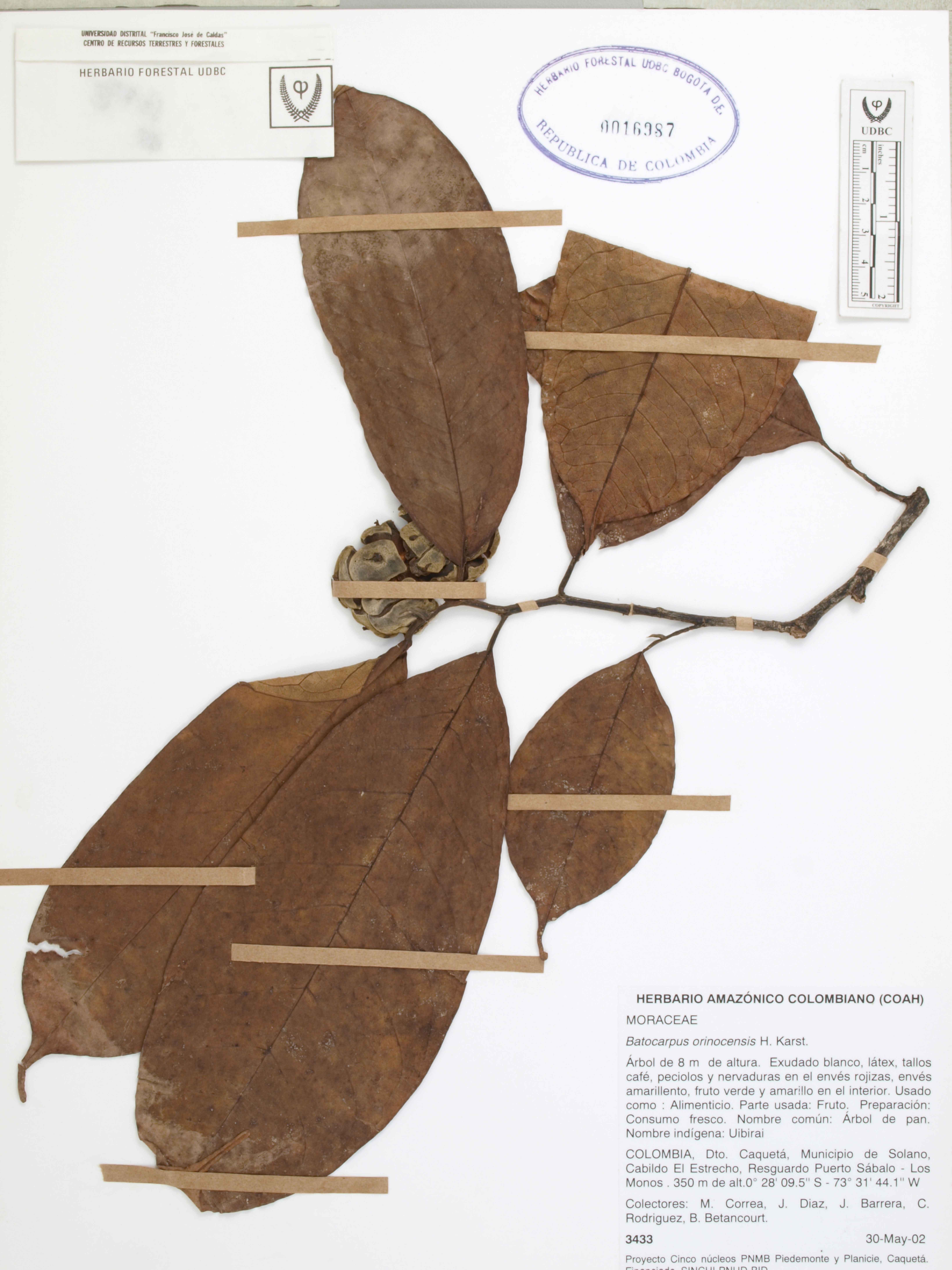 | dc.description | Fotografía del ejemplar Correa, M. 3433, determinado como Batocarpus orinocensis | |