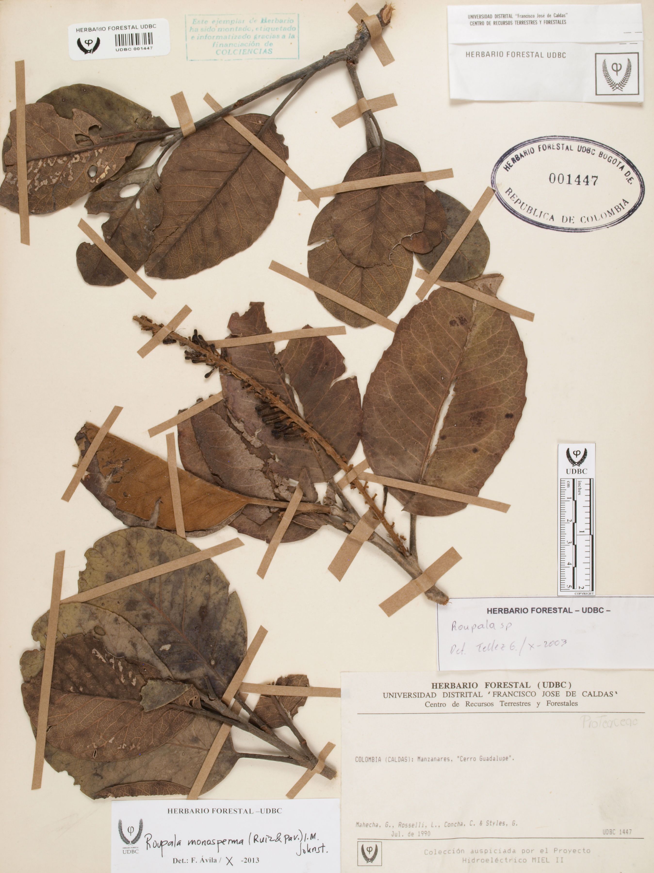 Fotografía del ejemplar Mahecha, G., determinado como Roupala monosperma en el año 2013