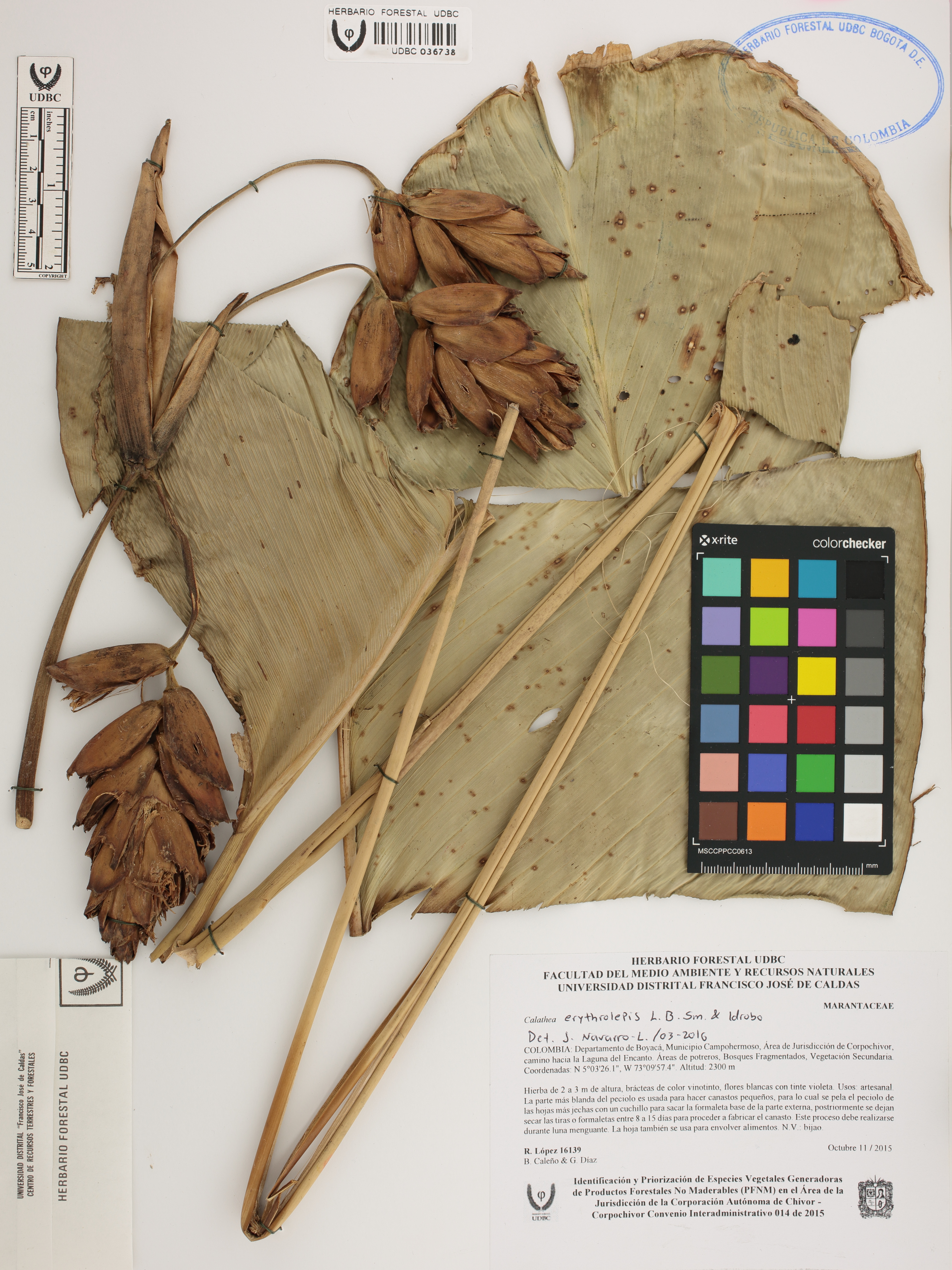 Fotografía del ejemplar López, R. 16139, determinado como Calathea erythrolepis en el año 2016