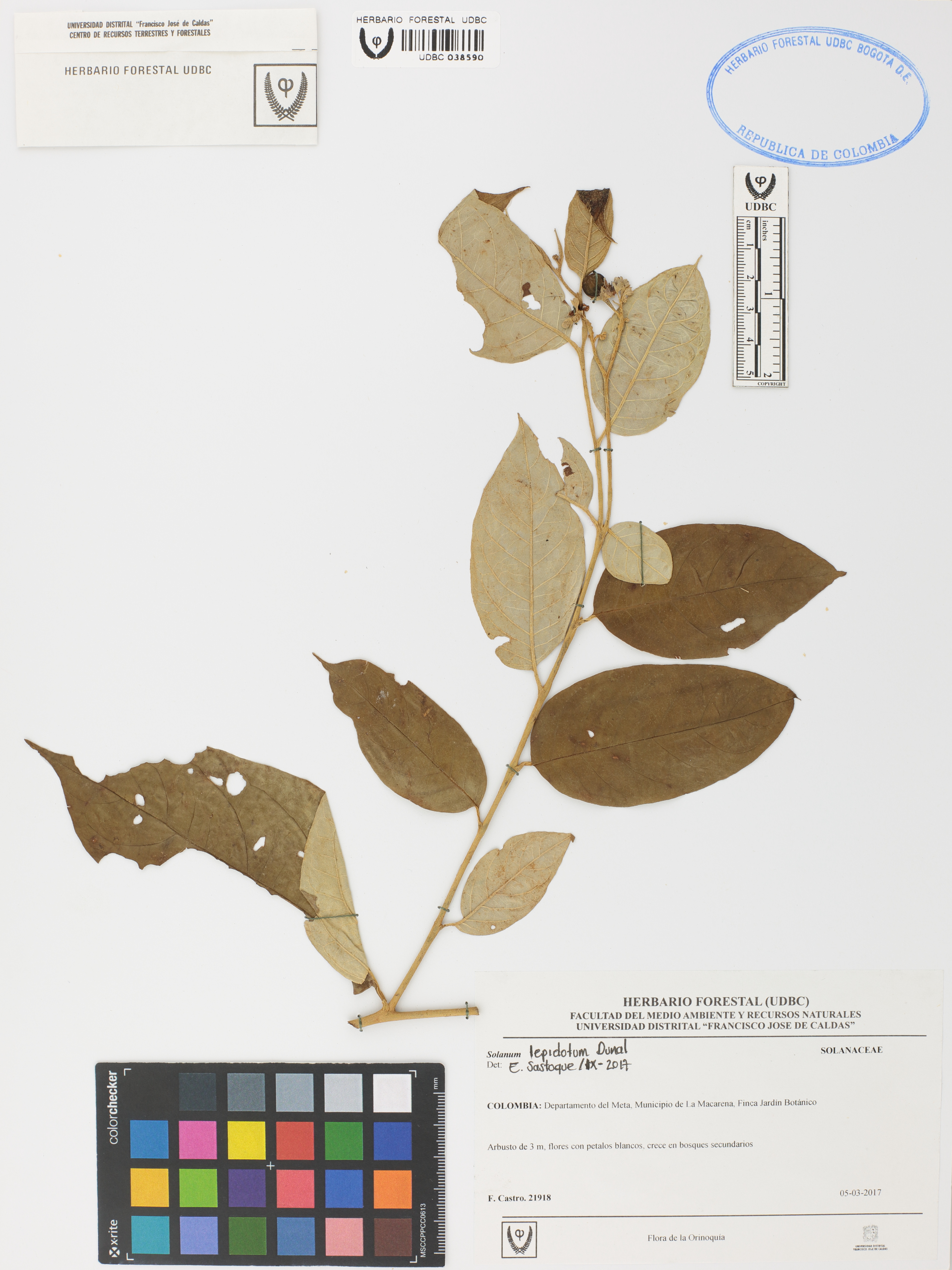 Fotografía del ejemplar Castro, F. 21918, determinado como Solanum lepidotum en el año 2017