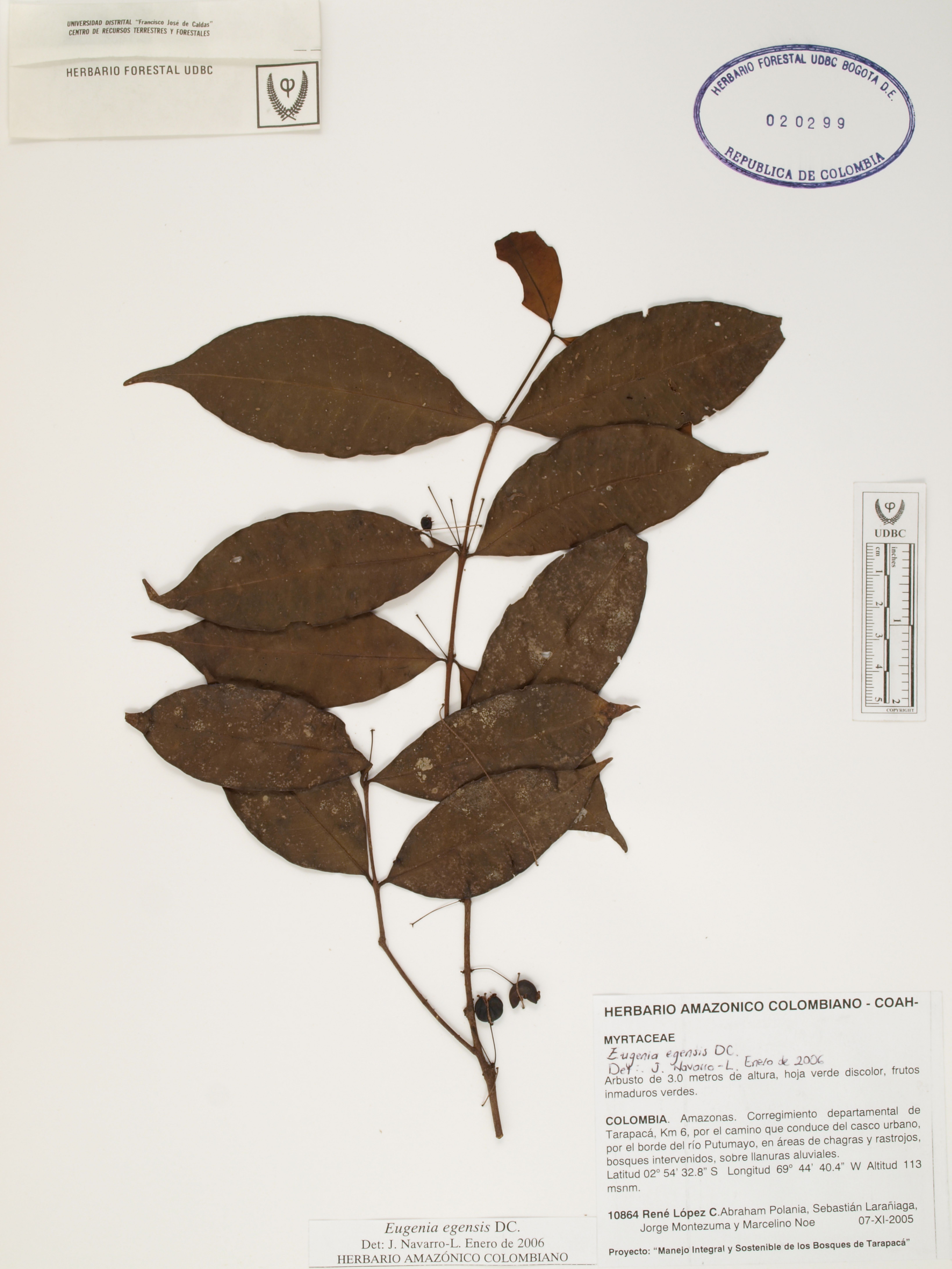 Fotografía del ejemplar López, R. 10864, determinado como Eugenia egensis en el año 2006