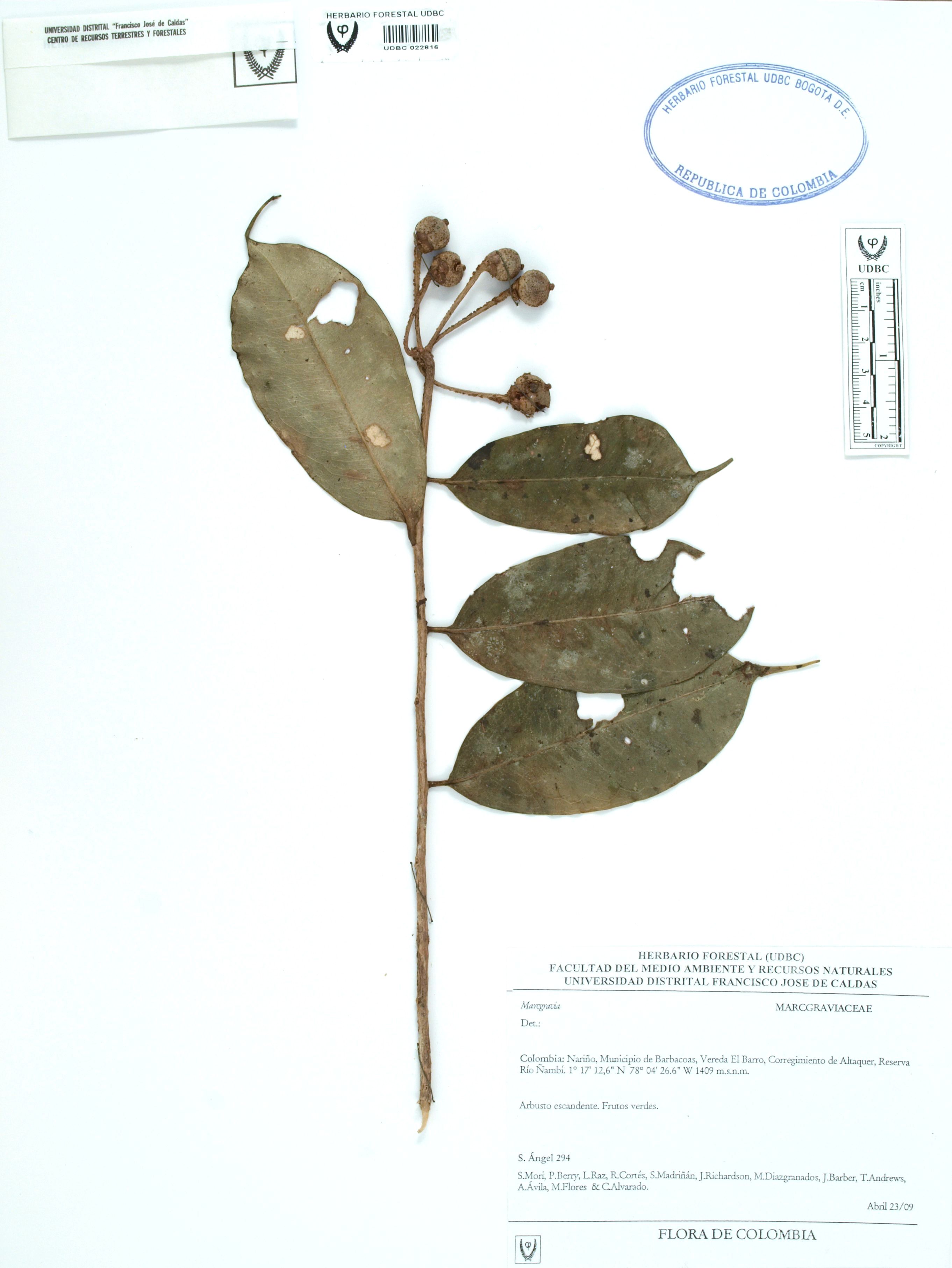Fotografía del ejemplar Ángel, S. 294, determinado como Marcgravia sp.