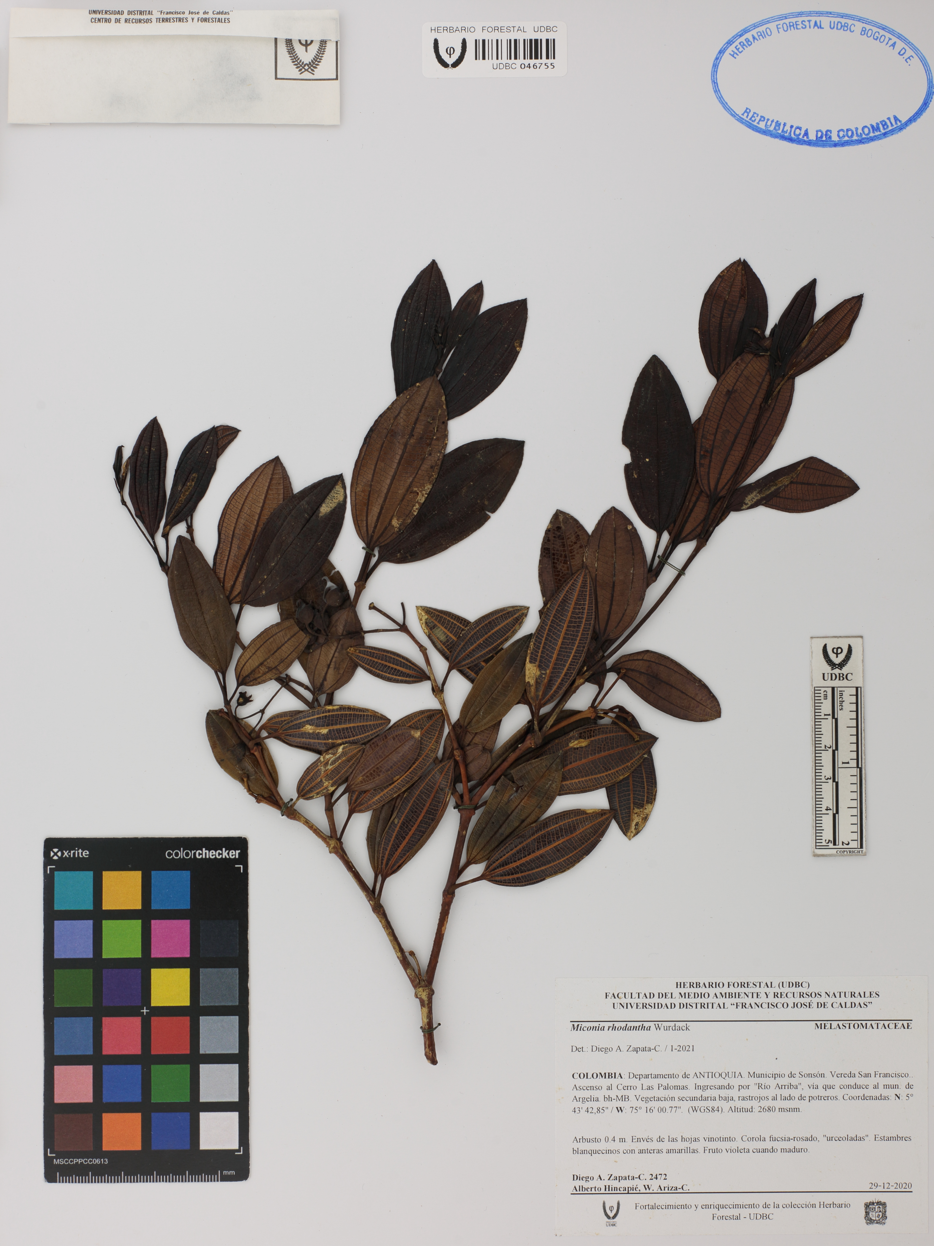 Fotografía del ejemplar Zapata-C., D. 2472, determinado como Miconia rhodantha en el año 2021
