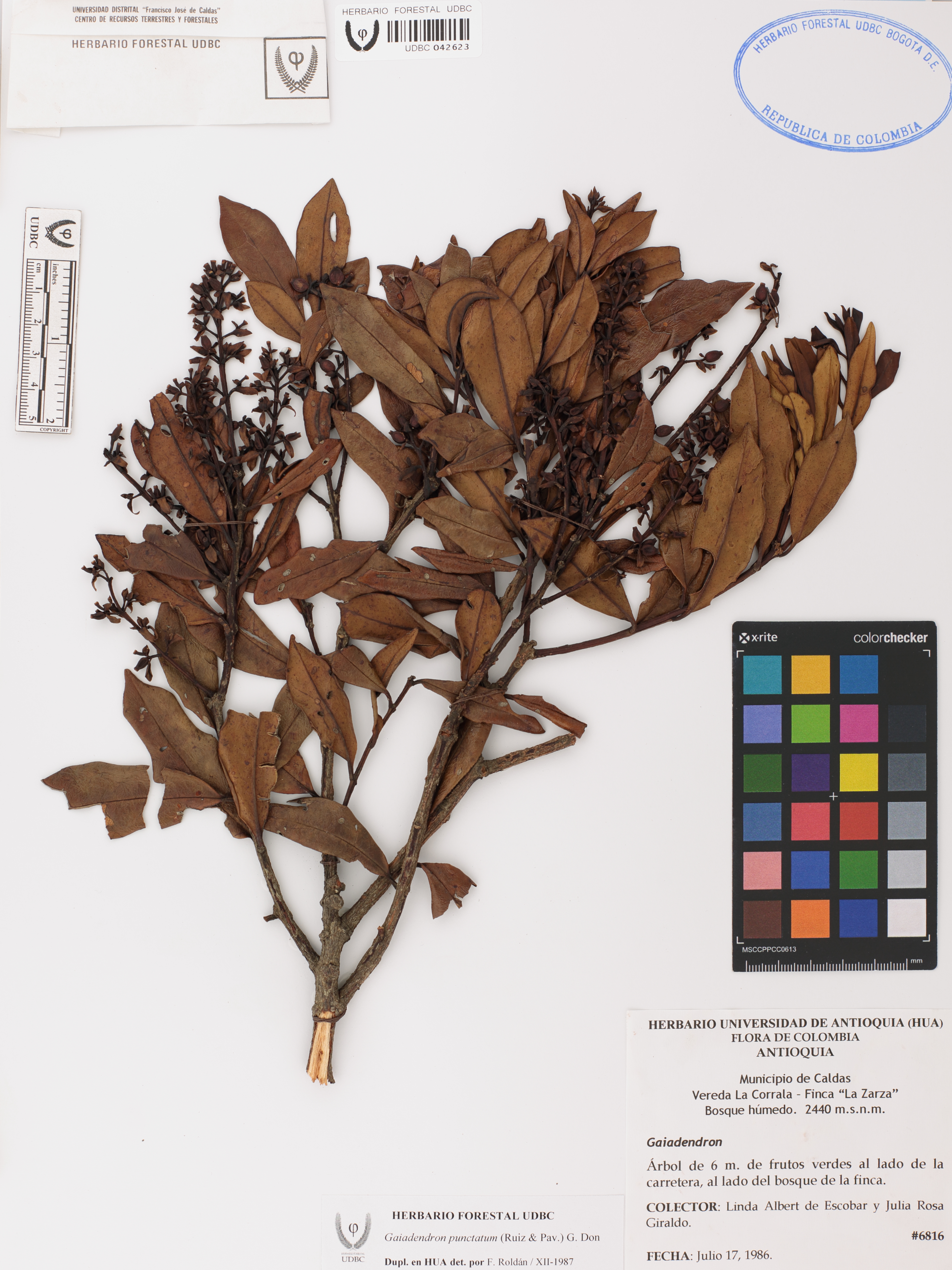 Fotografía del ejemplar Albert de Escobar, L. 6816, determinado como Gaiadendron punctatum en el año 1987