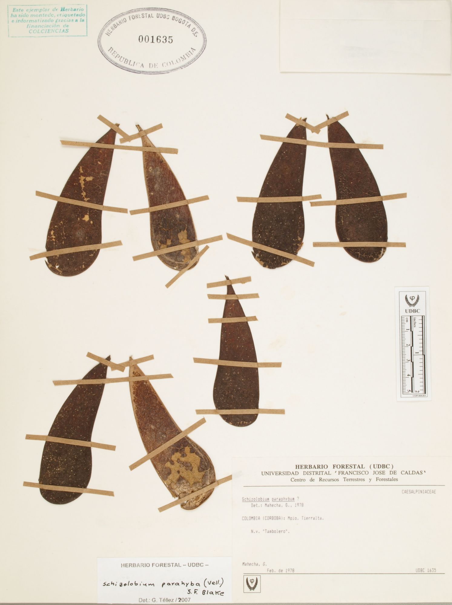 Fotografía del ejemplar Mahecha, G., determinado como Schizolobium parahyba en el año 2007