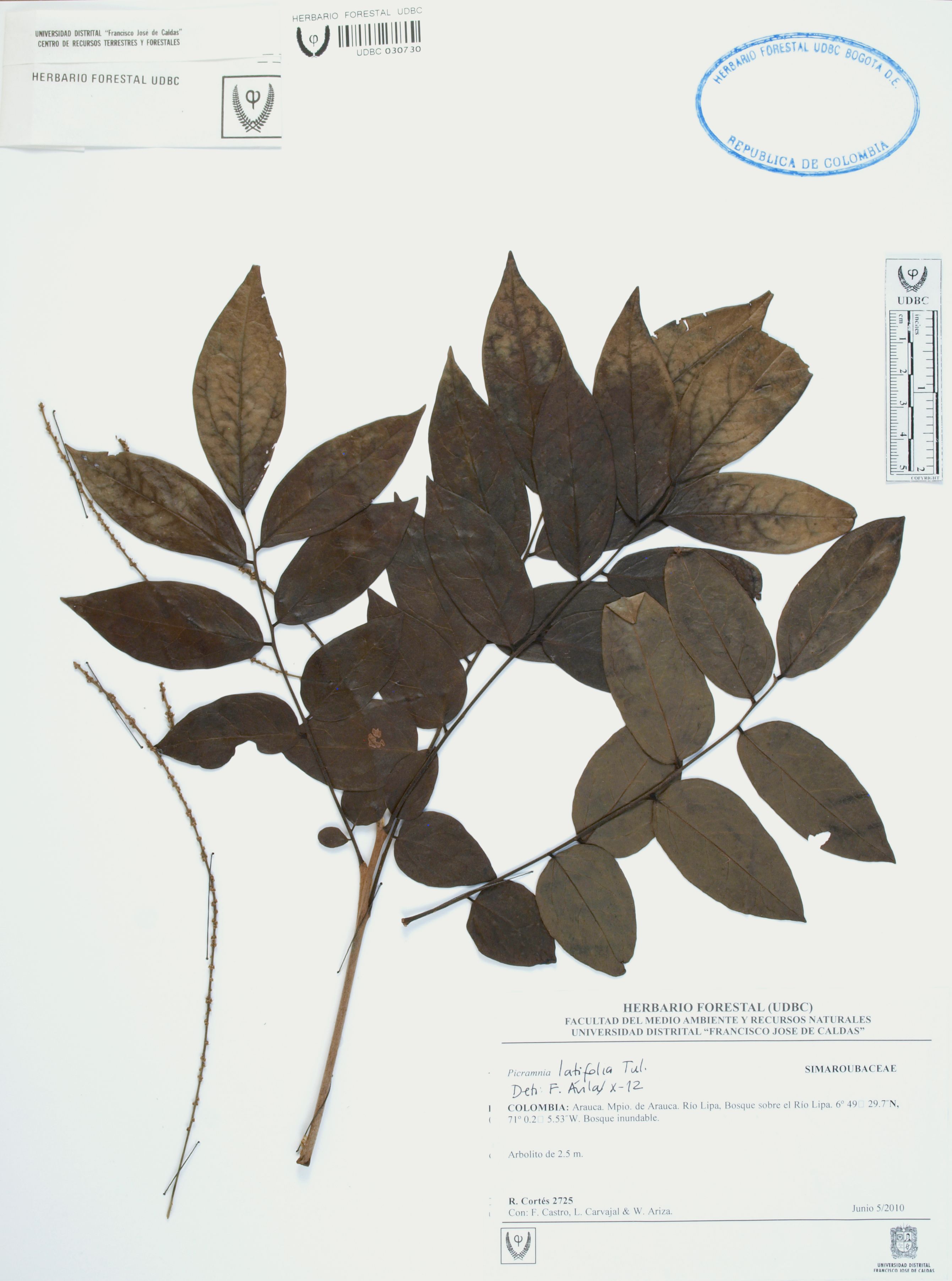Fotografía del ejemplar Cortés-B., R. 2725, determinado como Picramnia latifolia en el año 2012