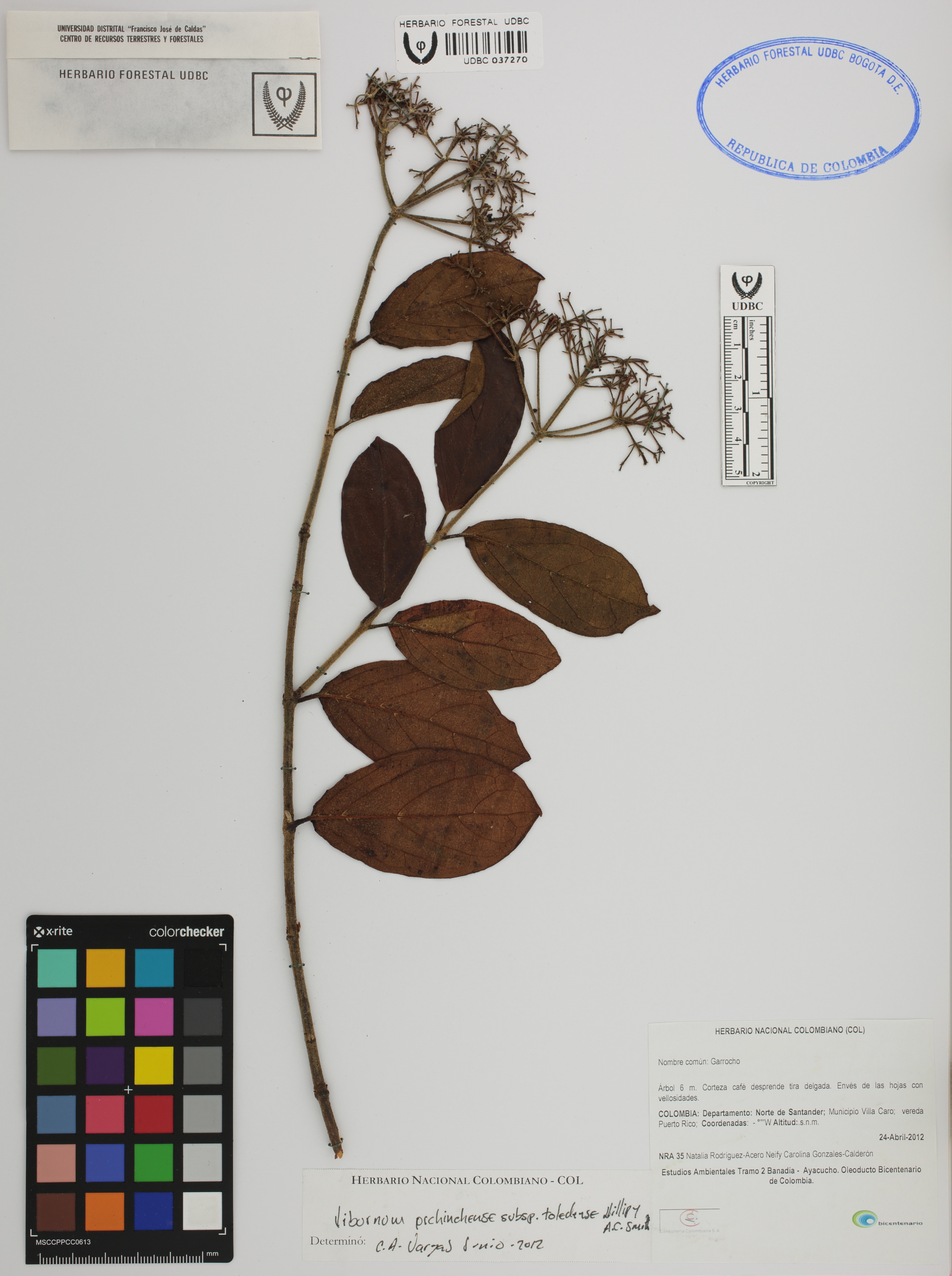 Fotografía del ejemplar Rodríguez-Acero, N. 35, determinado como Viburnum pichinchense subsp. toledense en el año 2012