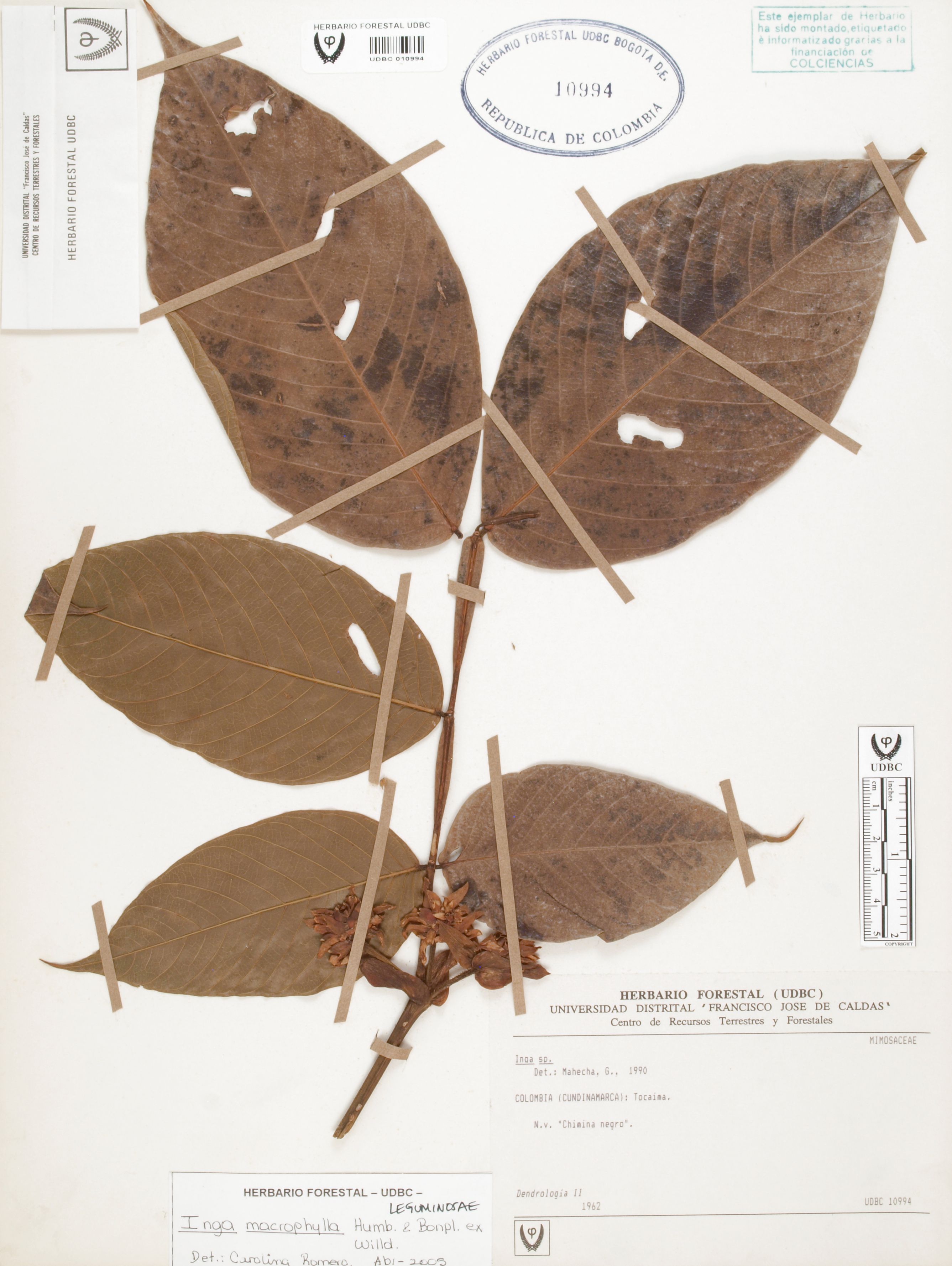 Fotografía del ejemplar Dendrología II- 1962,, determinado como Inga macrophylla en el año 2005