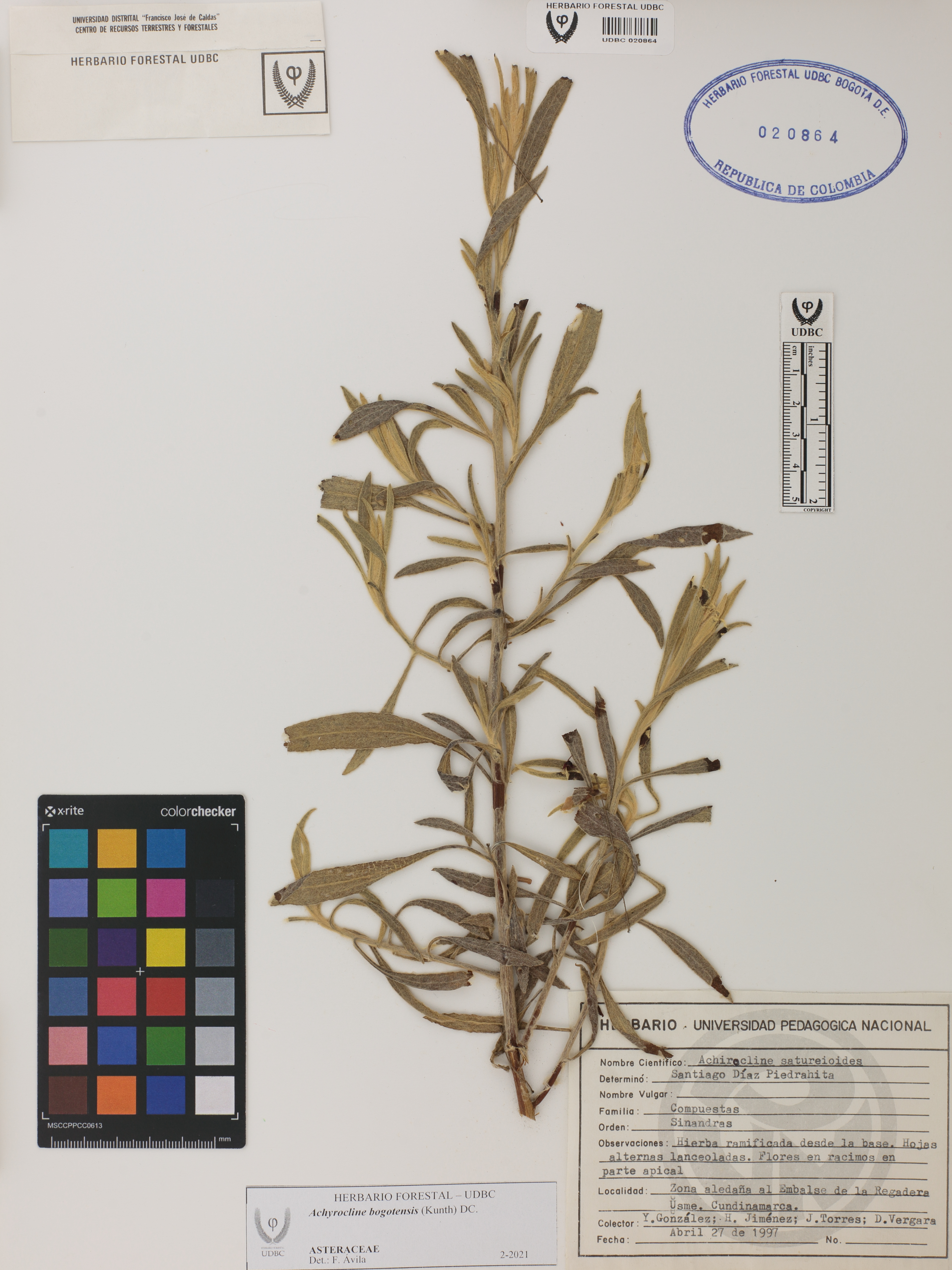 Fotografía del ejemplar González, Y., determinado como Achyrocline bogotensis en el año 2021