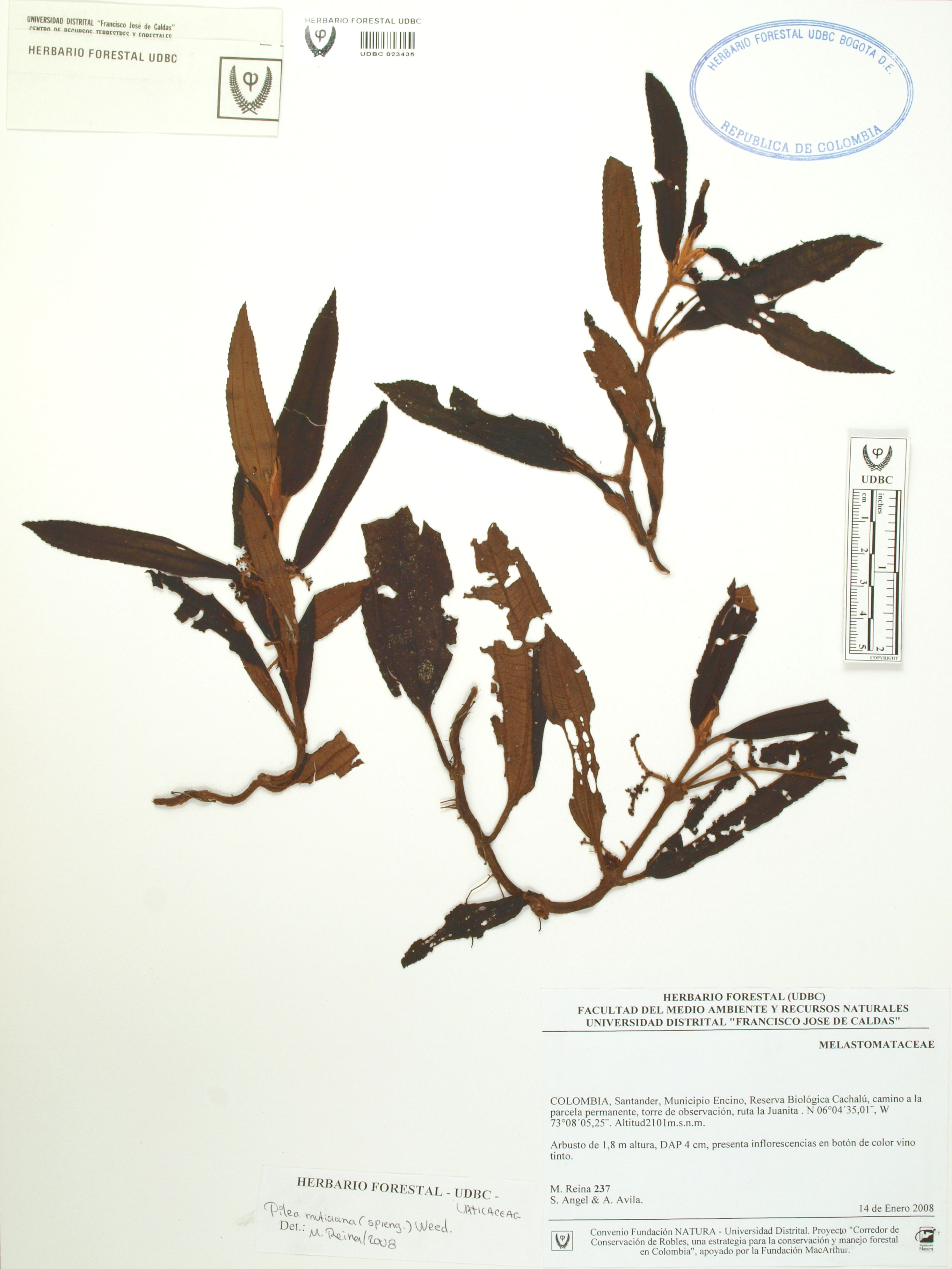 Fotografía del ejemplar Reina, M. 237, determinado como Pilea mutisiana en el año 2008