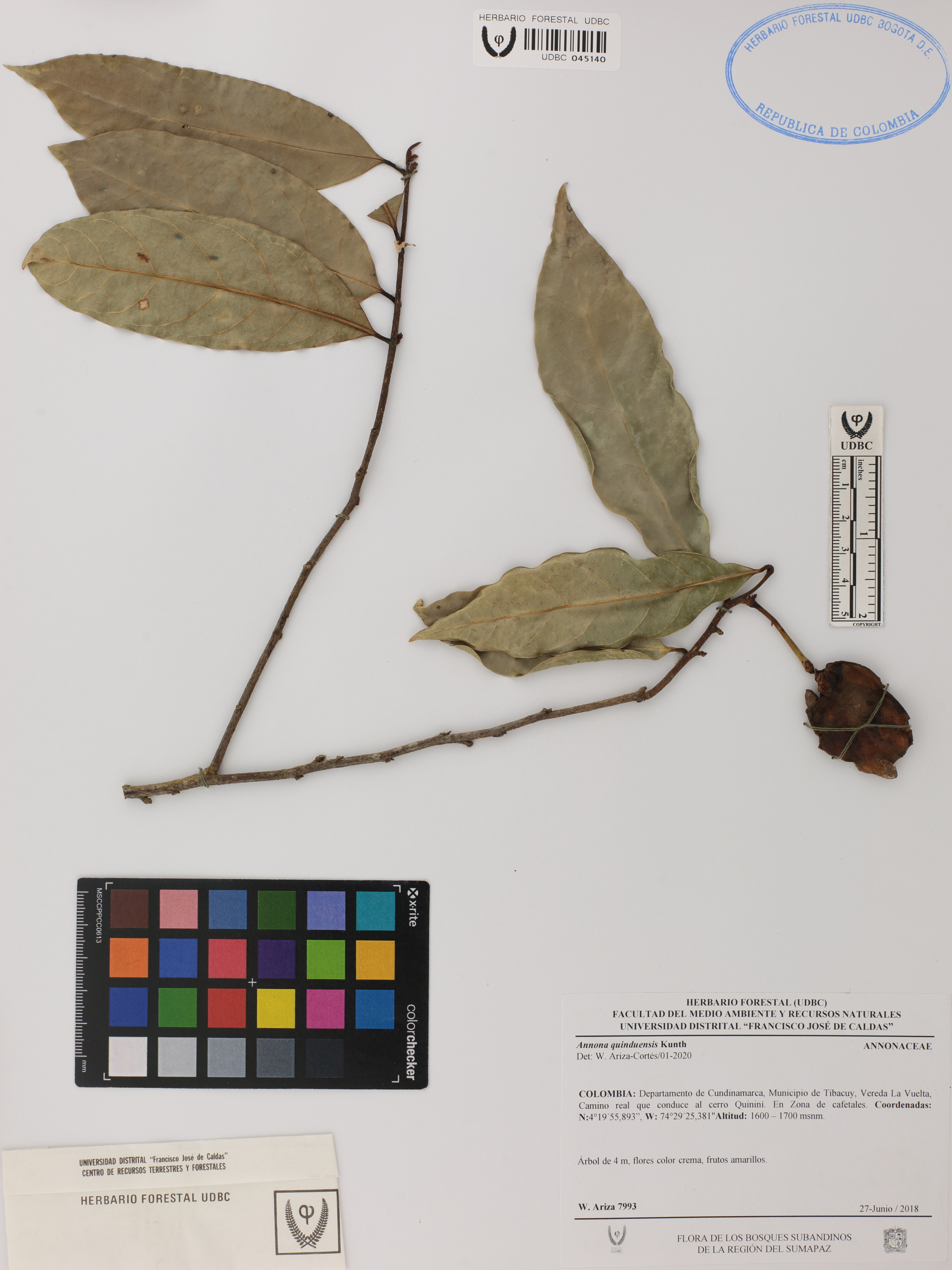Fotografía del ejemplar Ariza-Cortés, W. 7993, determinado como Annona quinduensis en el año 2020