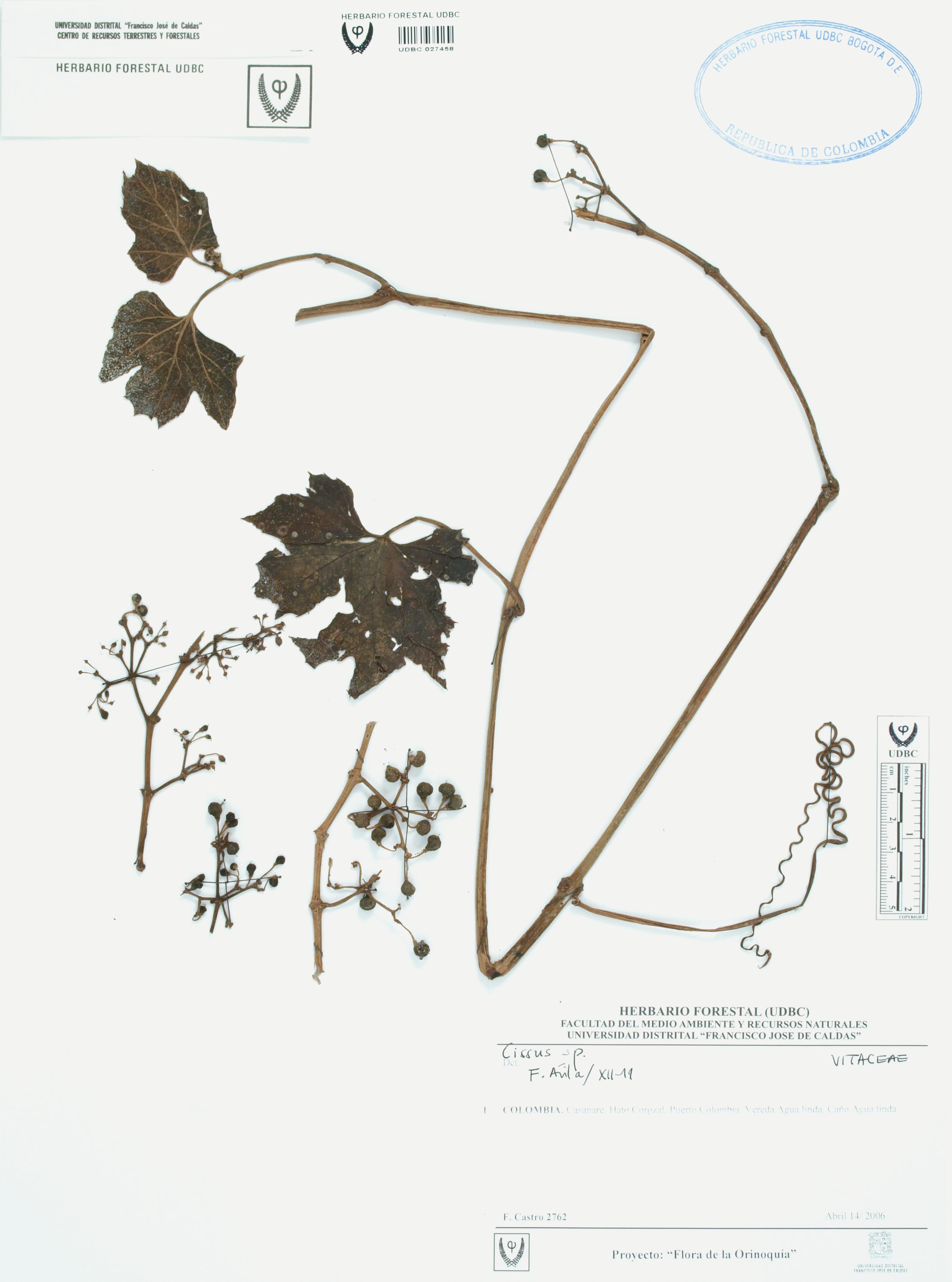 Fotografía del ejemplar Castro, F. 2762, determinado como Cissus sp. en el año 2011