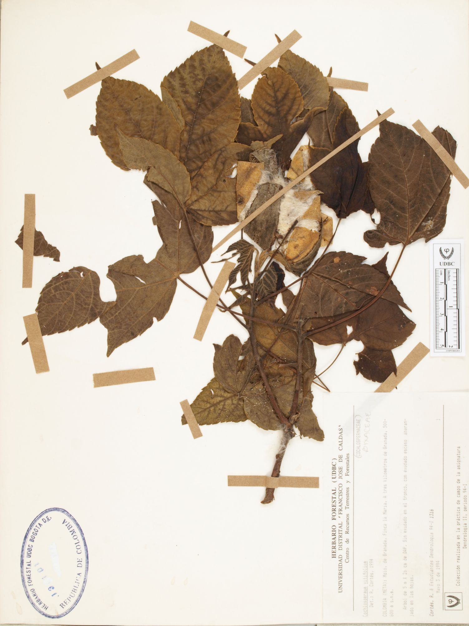 Fotografía del ejemplar Cortés-B., R. 1316, determinado como Cochlospermum vitifolium en el año 1994