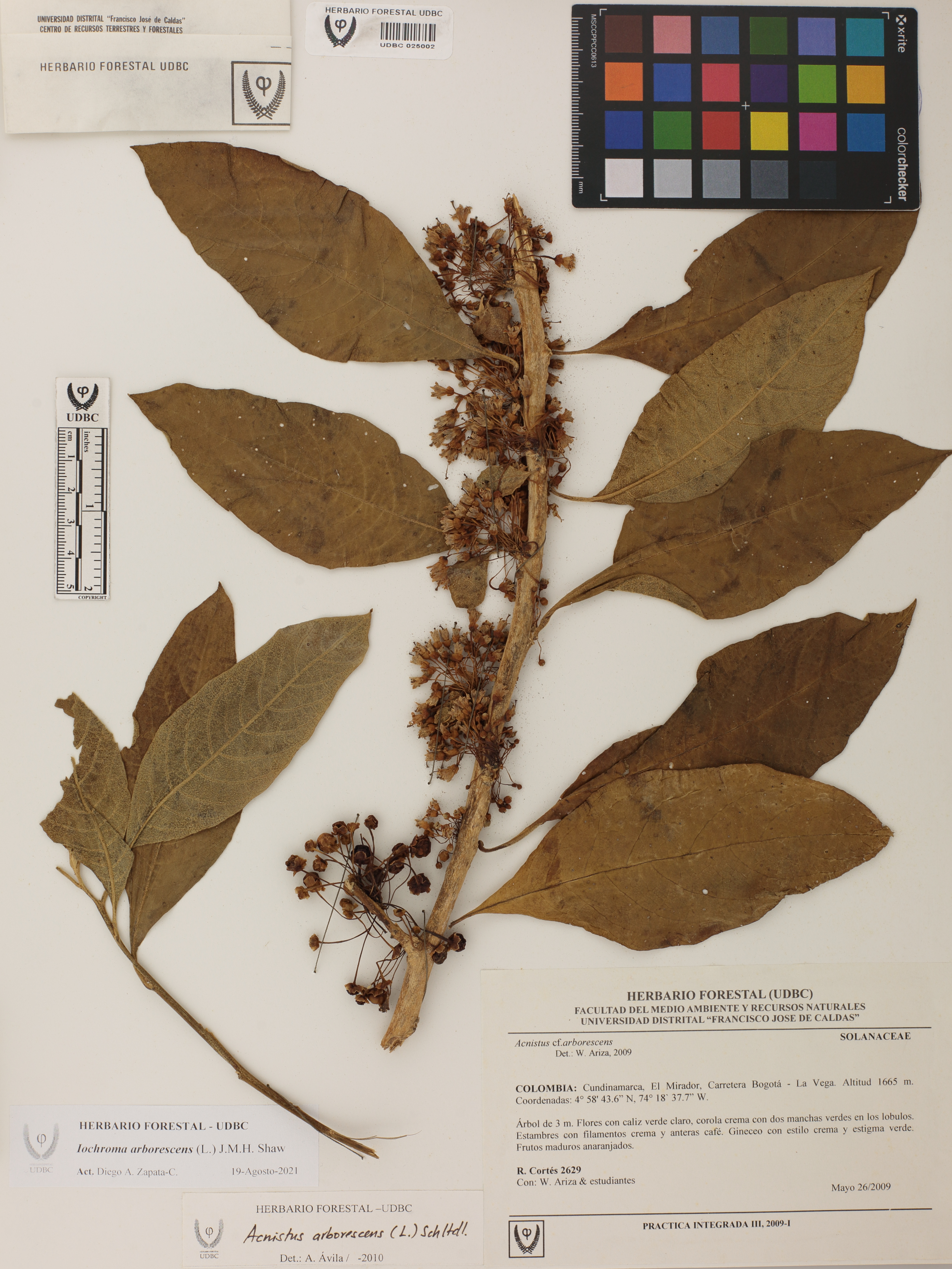 Fotografía del ejemplar Cortés-B., R. 2629, determinado como Iochroma arborescens en el año 2010