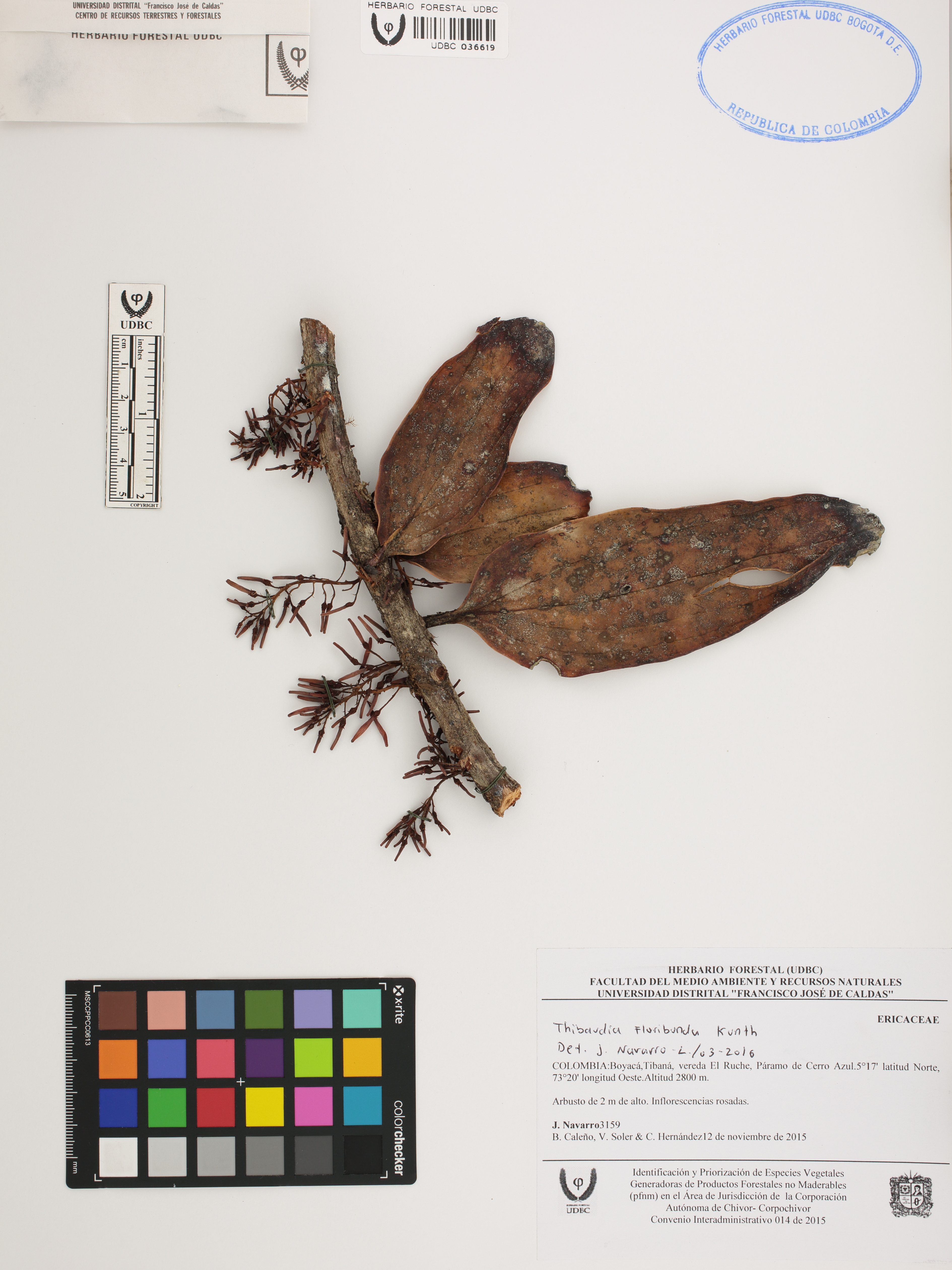 Fotografía del ejemplar Navarro, J. 3159, determinado como Thibaudia floribunda en el año 2016
