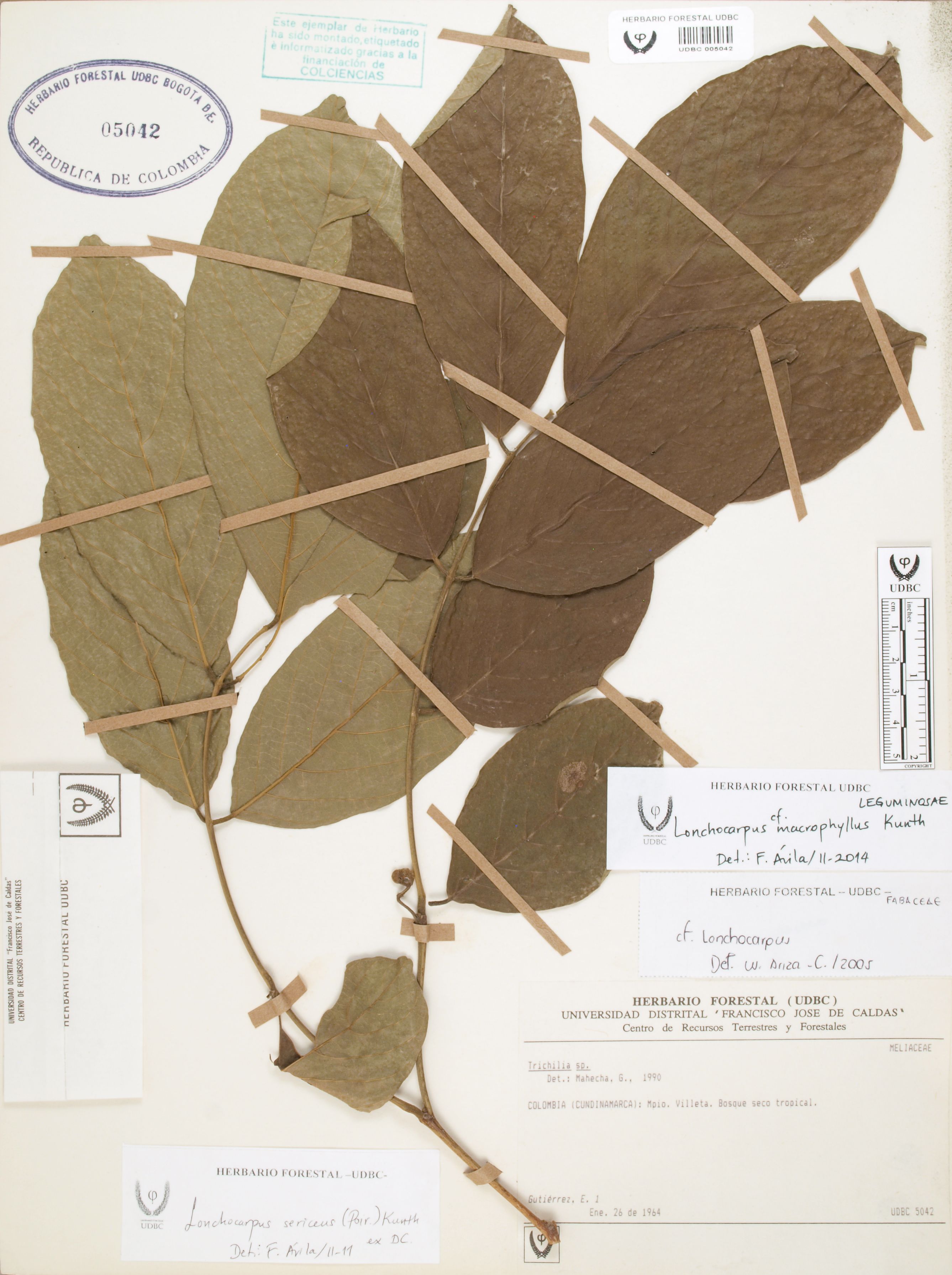 Fotografía del ejemplar Gutiérrez, E. 1, determinado como Lonchocarpus macrophyllus en el año 2014