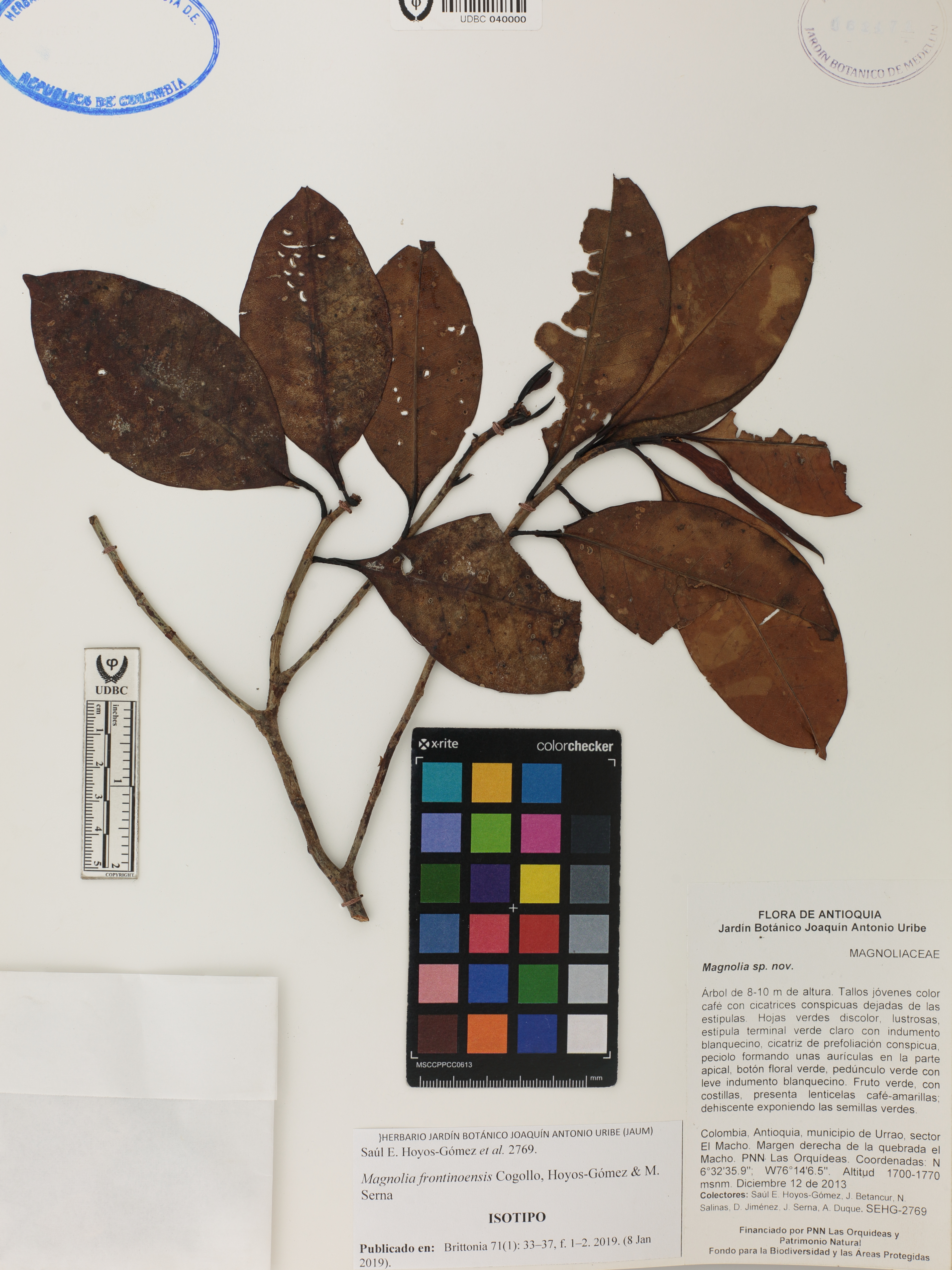| dc.description | Fotografía del ejemplar Hoyos-Gómez, S. 2769, Isotipo de Magnolia frontinoensis | |