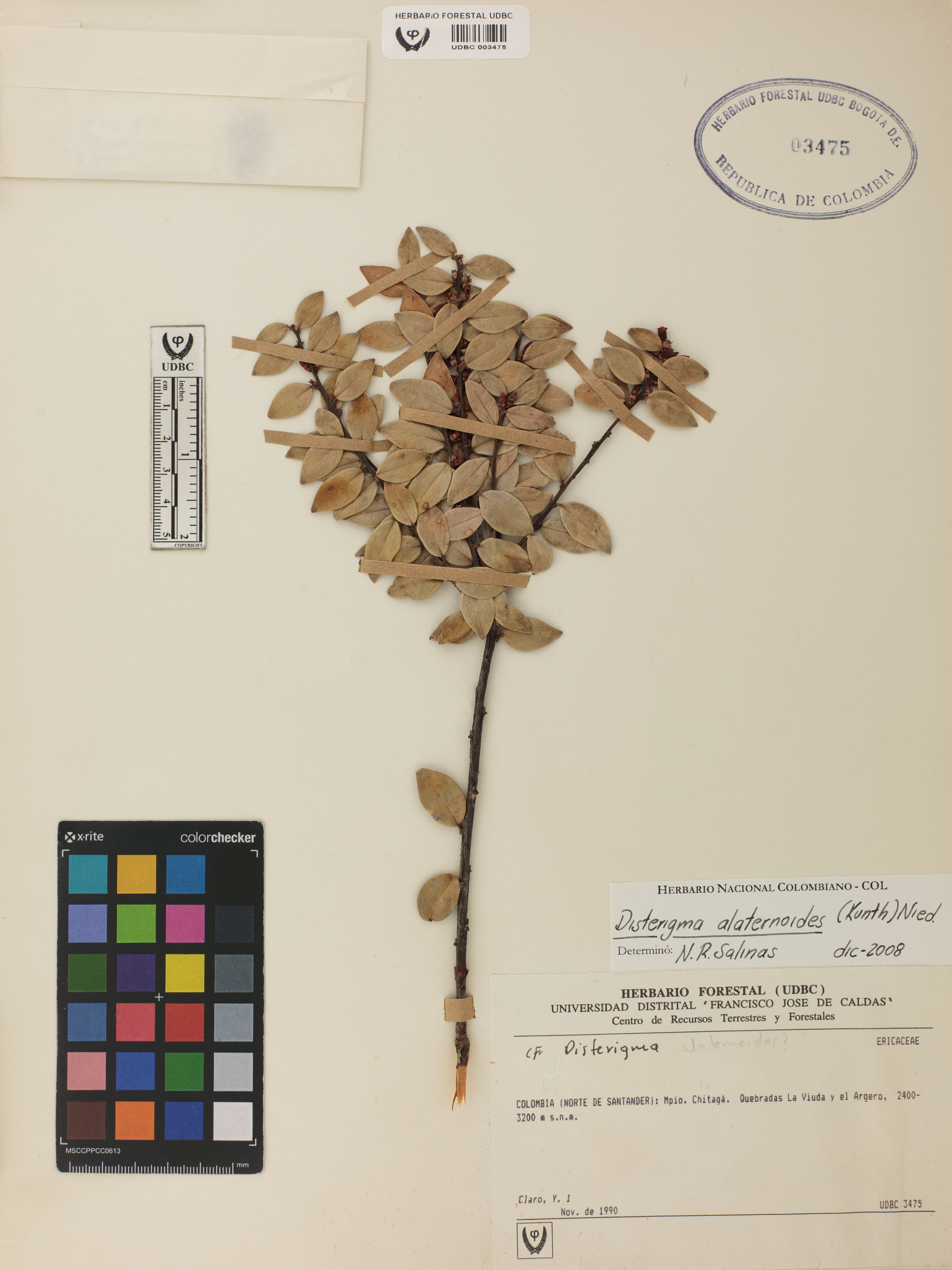 Fotografía del ejemplar Claro, Y. 1, determinado como Disterigma alaternoides en el año 2008