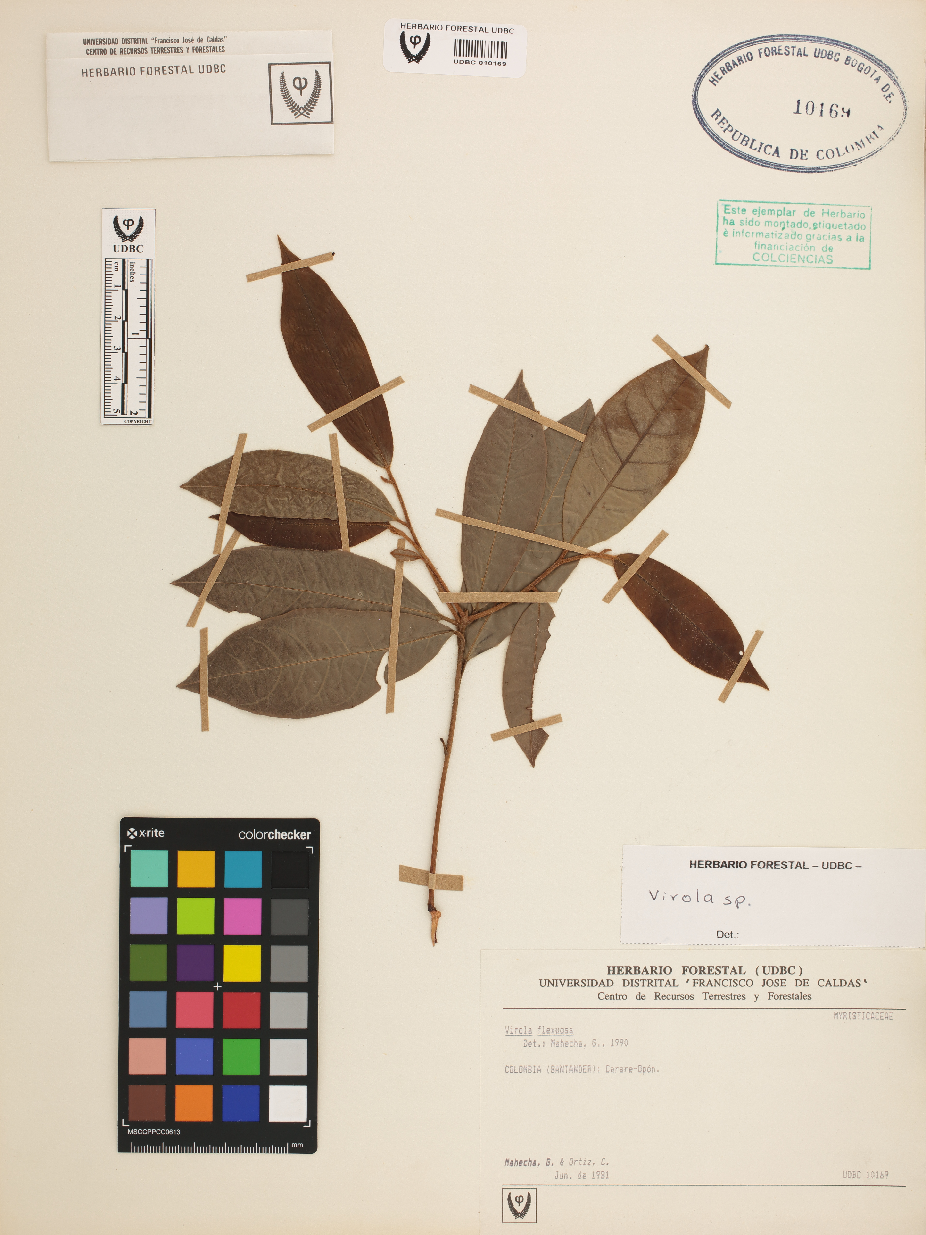 Fotografía del ejemplar Mahecha, G., determinado como Virola sp.