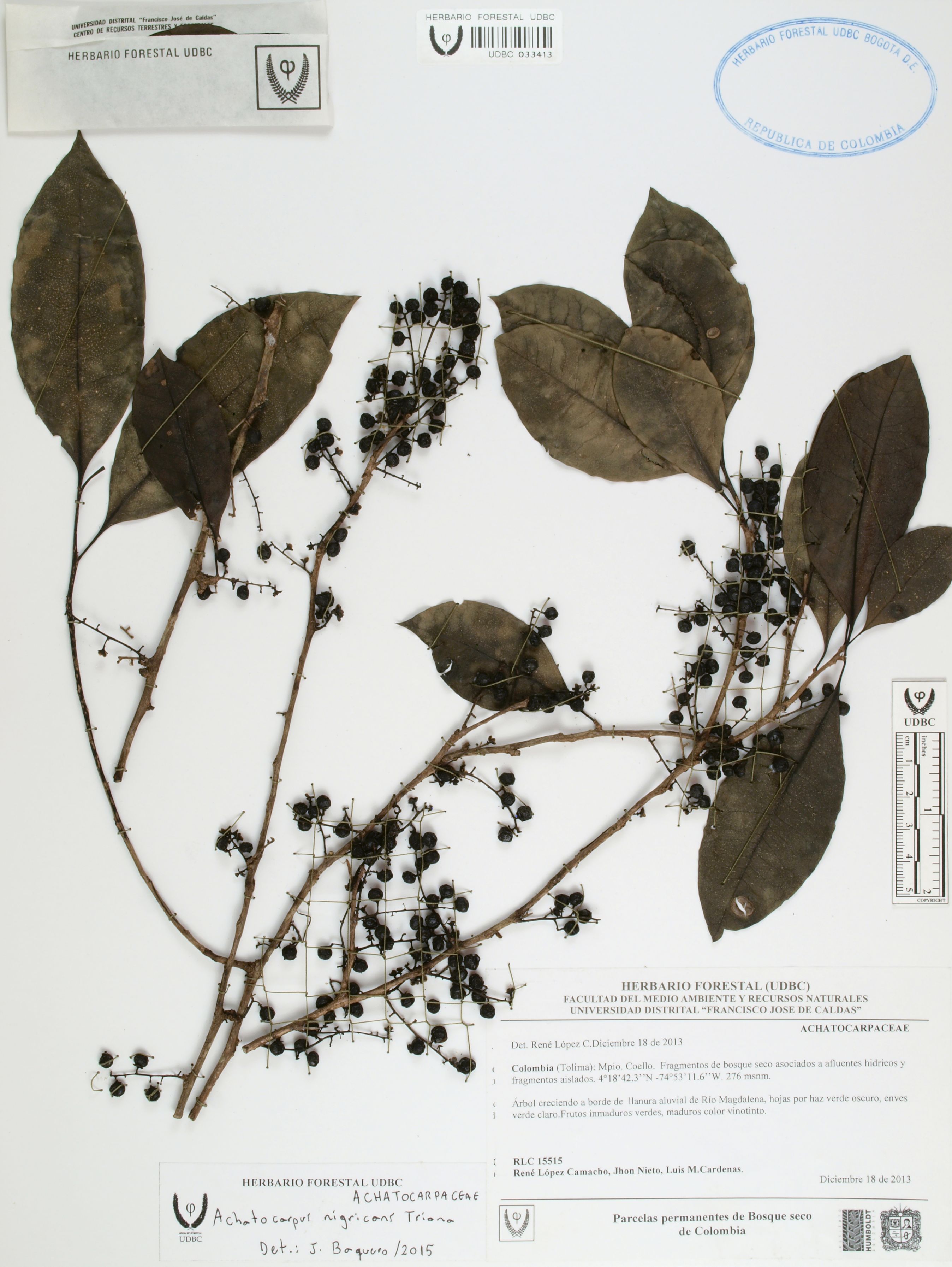 Fotografía del ejemplar López, R. 15515, determinado como Achatocarpus nigricans en el año 2015