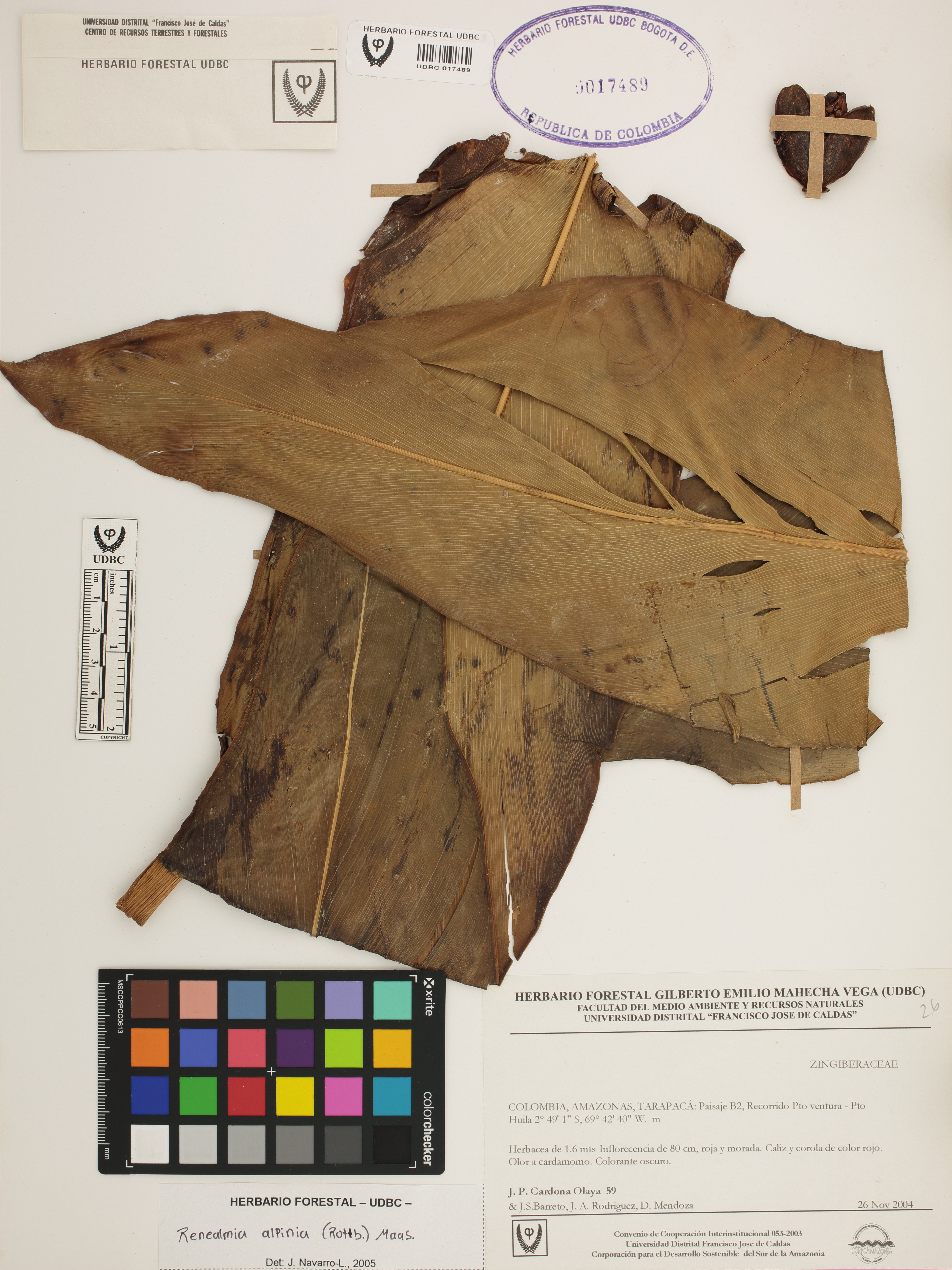 Fotografía del ejemplar Cardona, J. 59, determinado como Renealmia alpinia en el año 2005