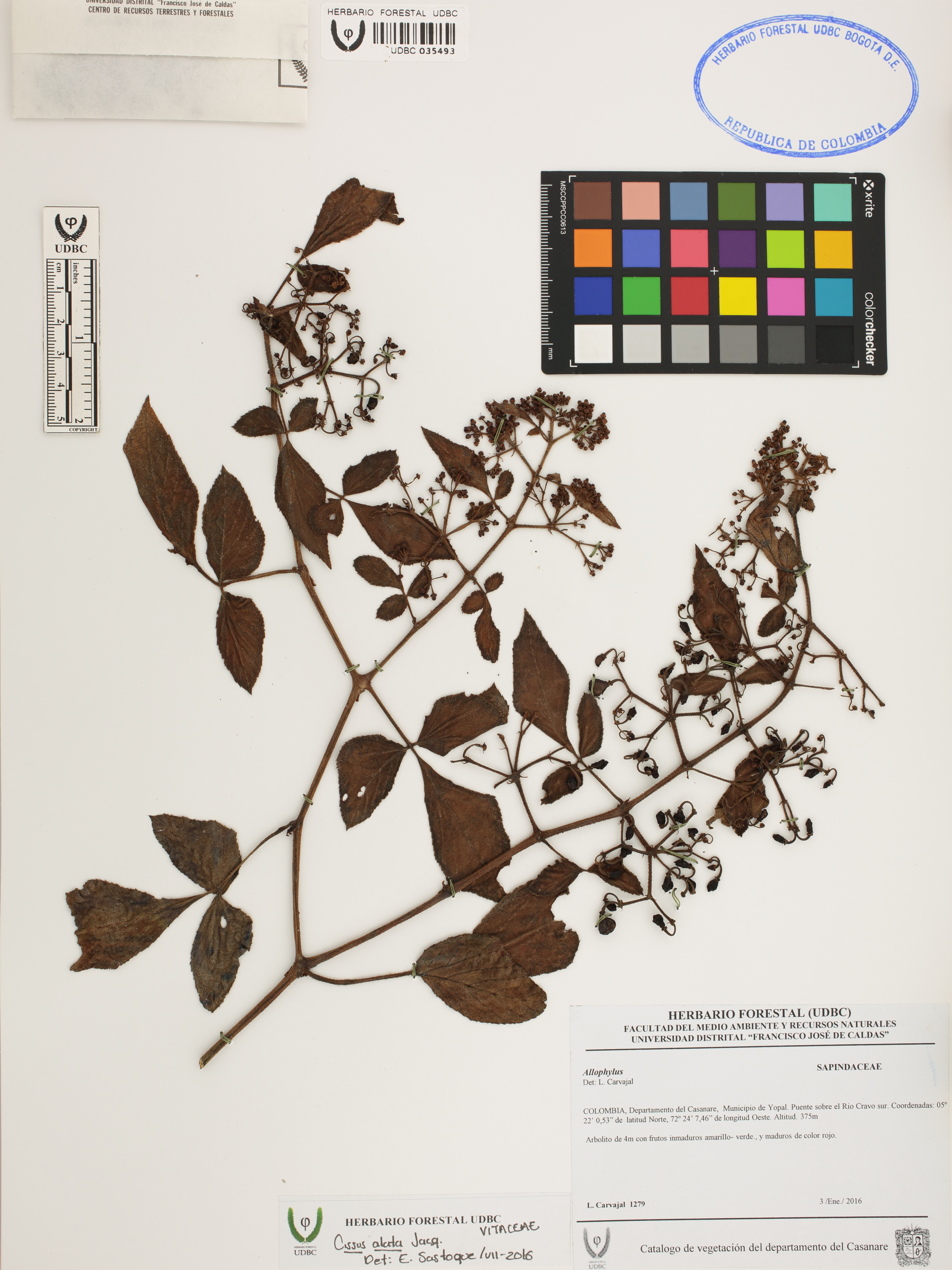 Fotografía del ejemplar Carvajal, L. 1279, determinado como Cissus alata en el año 2016