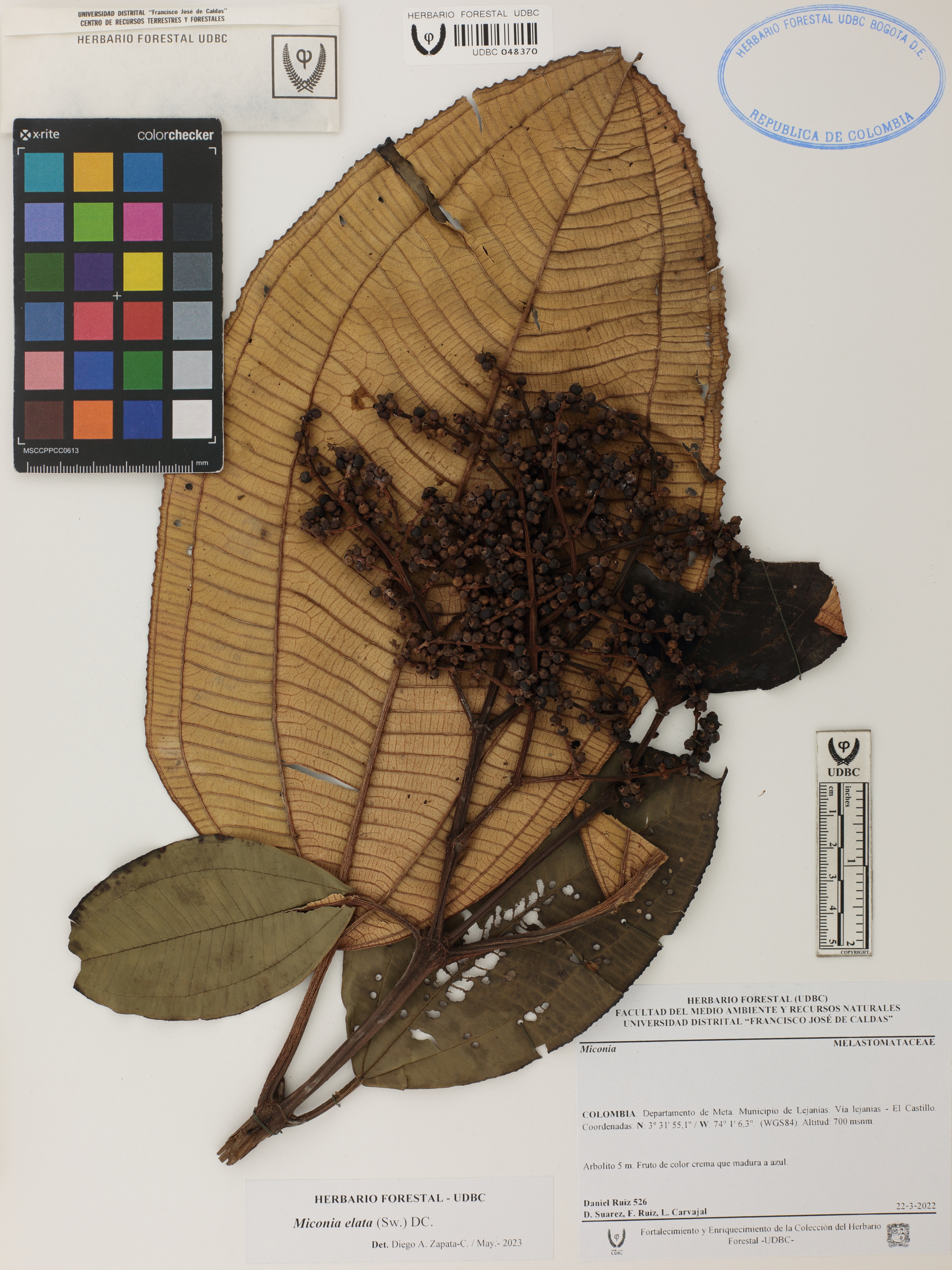 Fotografía del ejemplar Ruiz, D. 526, determinado como Miconia elata en el año 2023