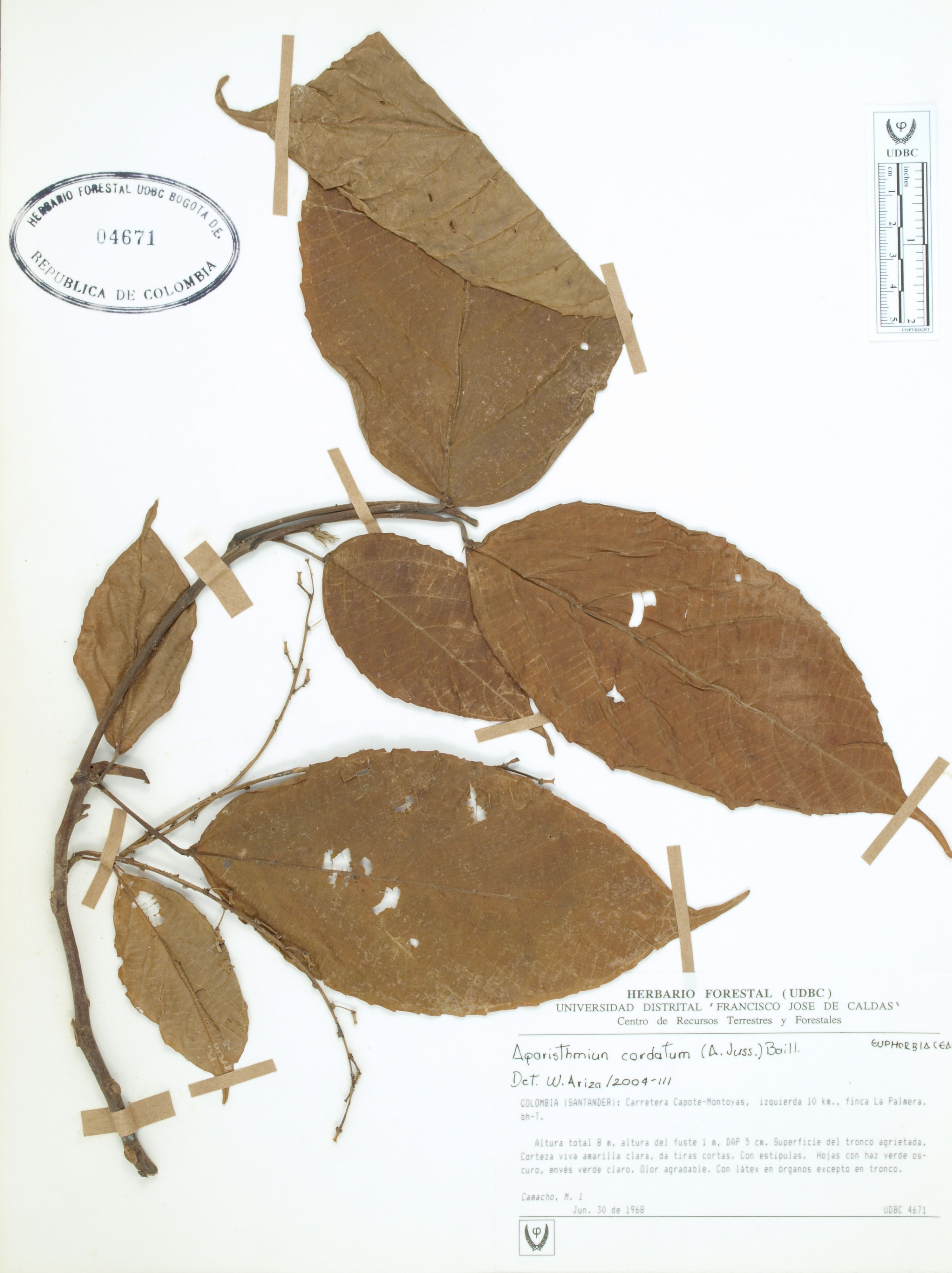 Fotografía del ejemplar Camacho, M. 1, determinado como Aparisthmium cordatum en el año 2004