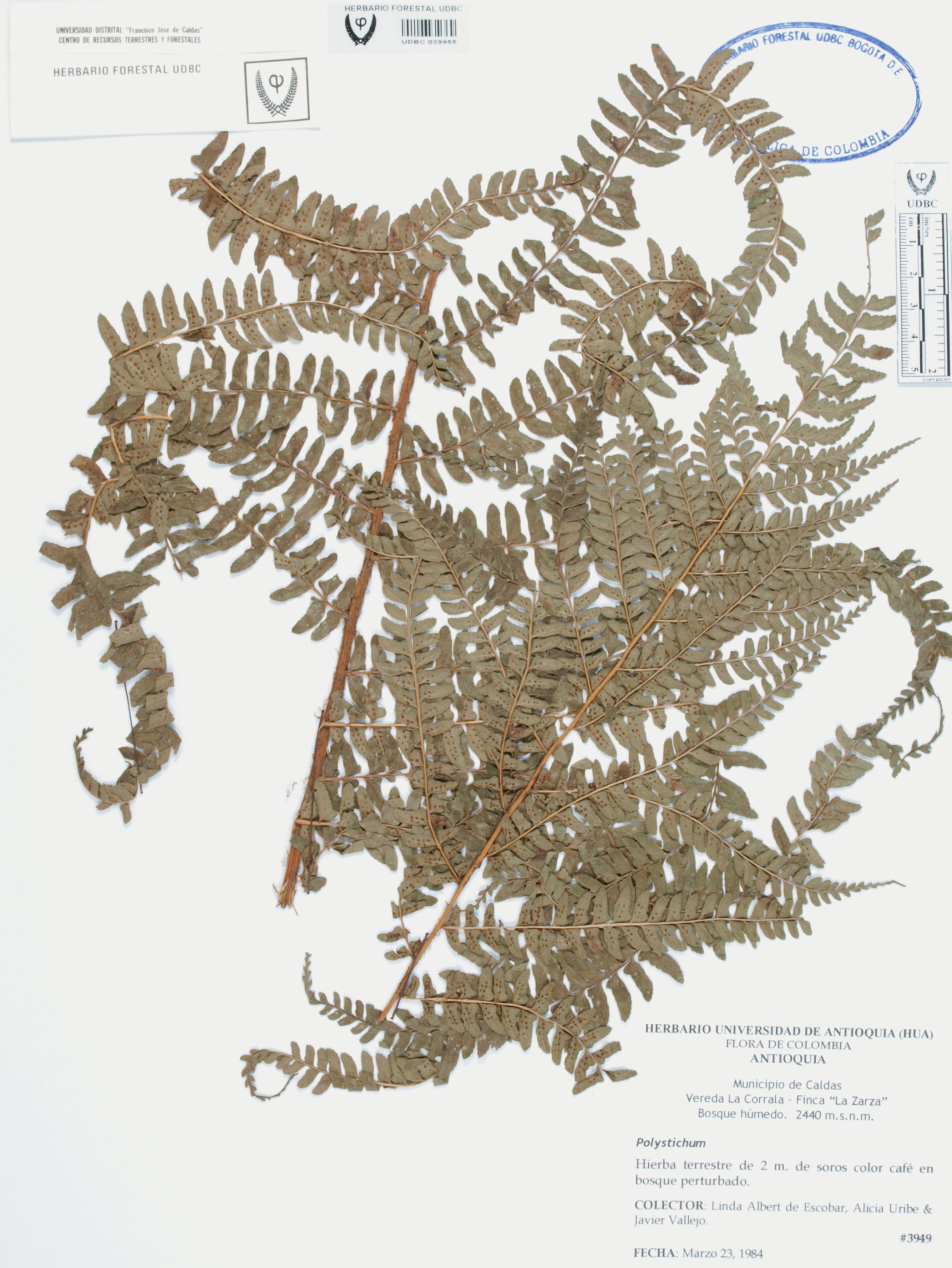 Fotografía del ejemplar Albert de E., L. 3949, determinado como Polystichum sp.