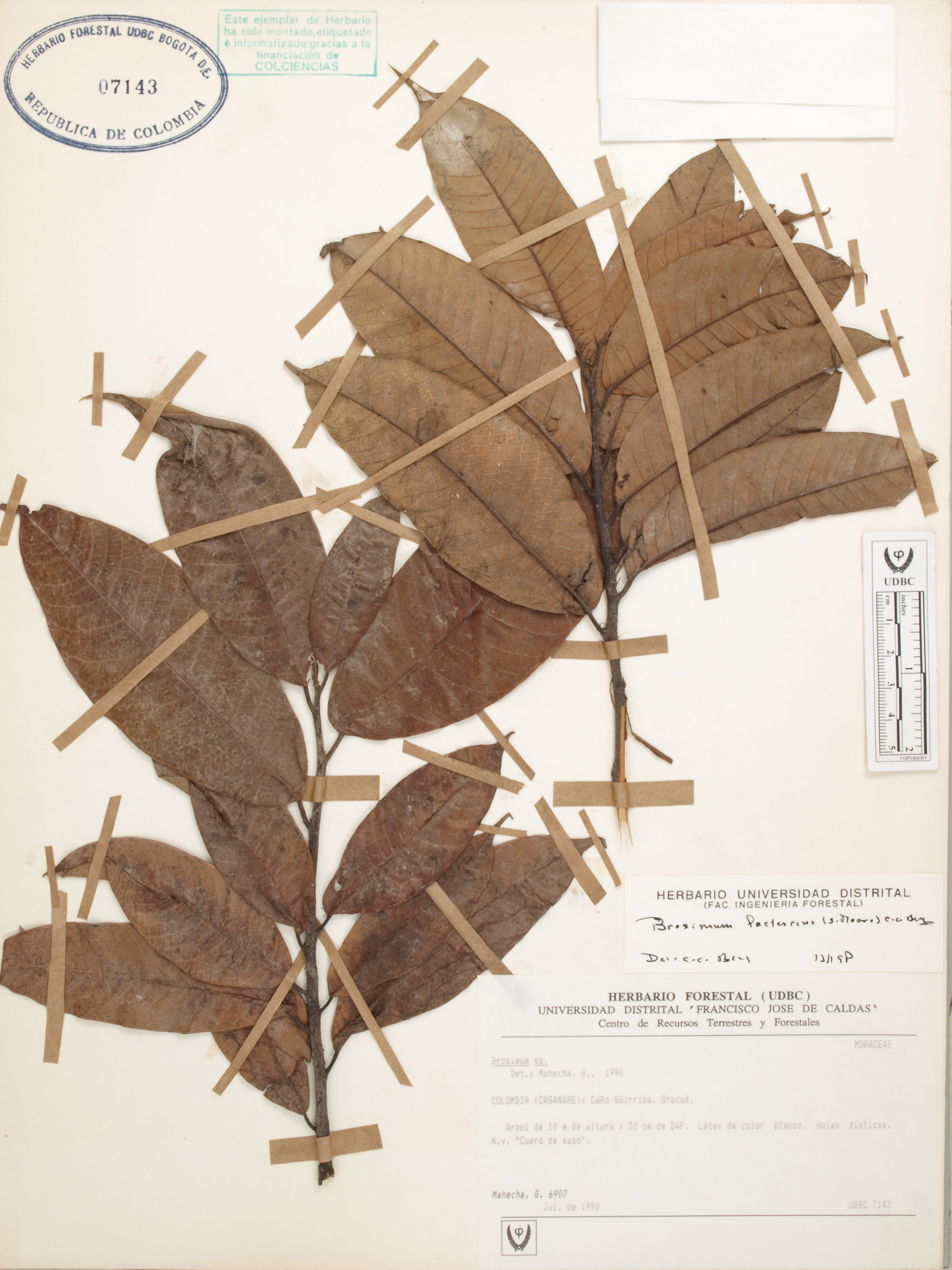 Fotografía del ejemplar Mahecha, G. 6907, determinado como Brosimum lactescens en el año 1997