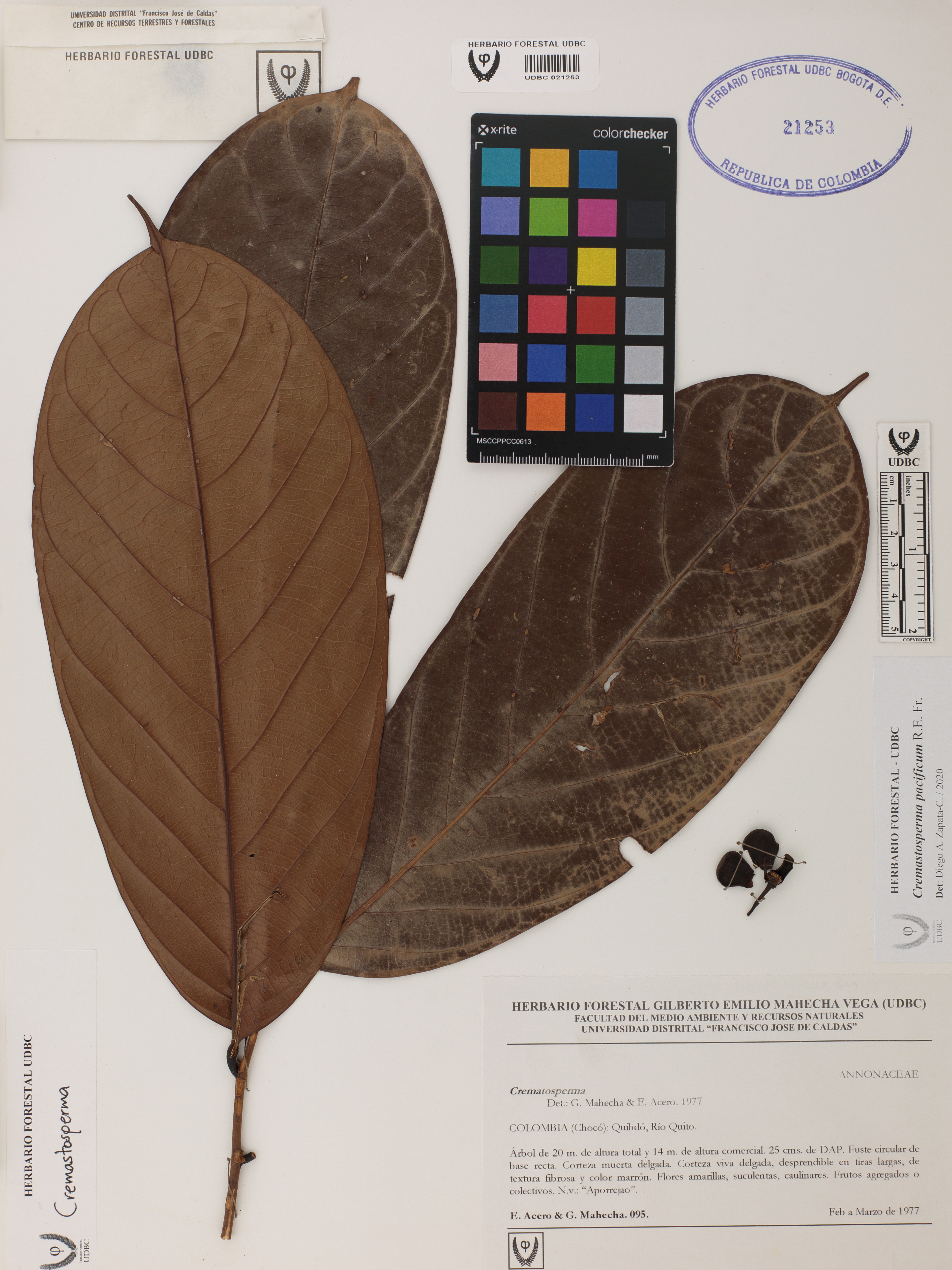Fotografía del ejemplar Acero, E. 95, determinado como Cremastosperma pacificum en el año 2020