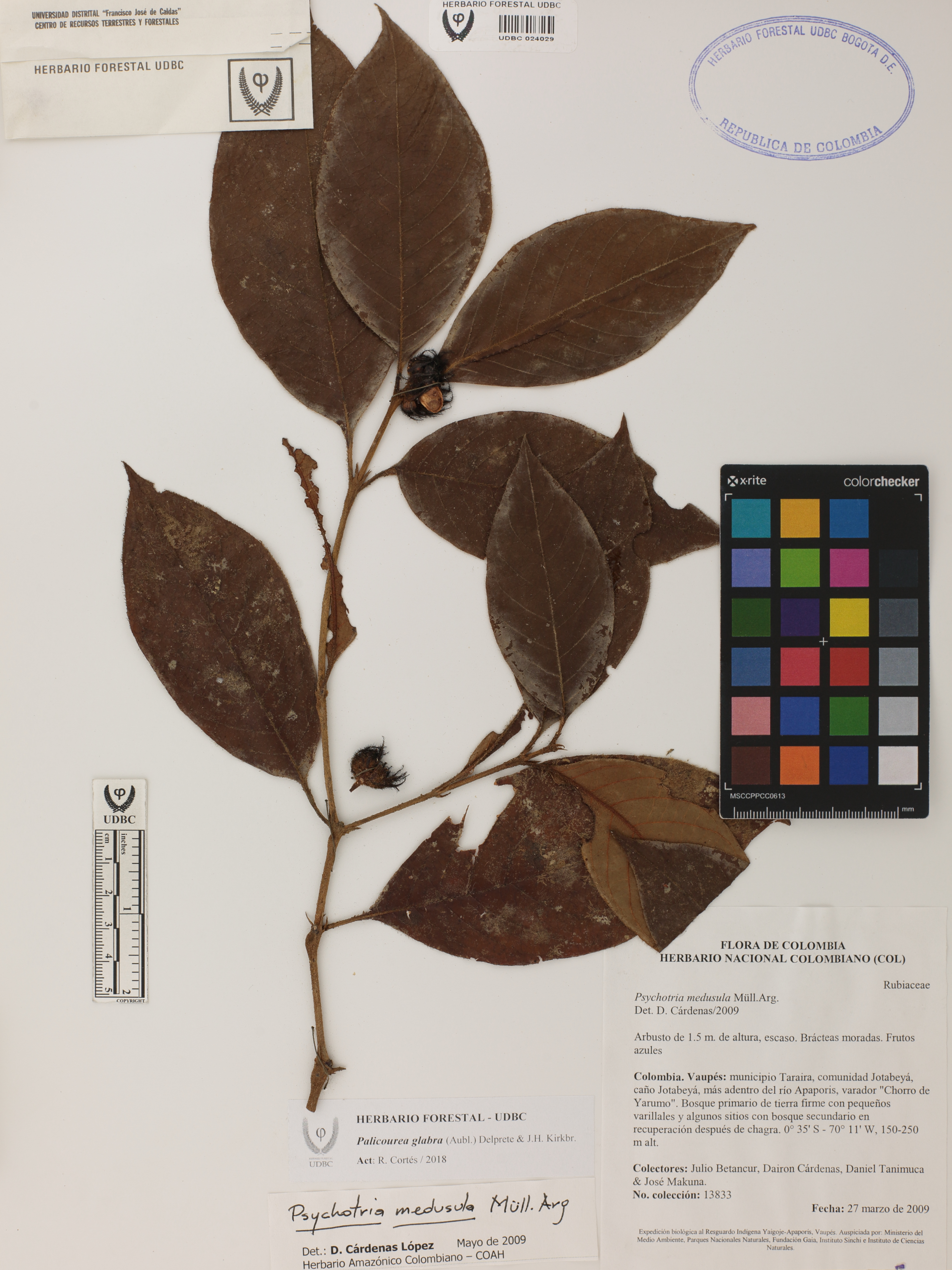 Fotografía del ejemplar Betancur, J. 13833, determinado como Palicourea glabra en el año 2009