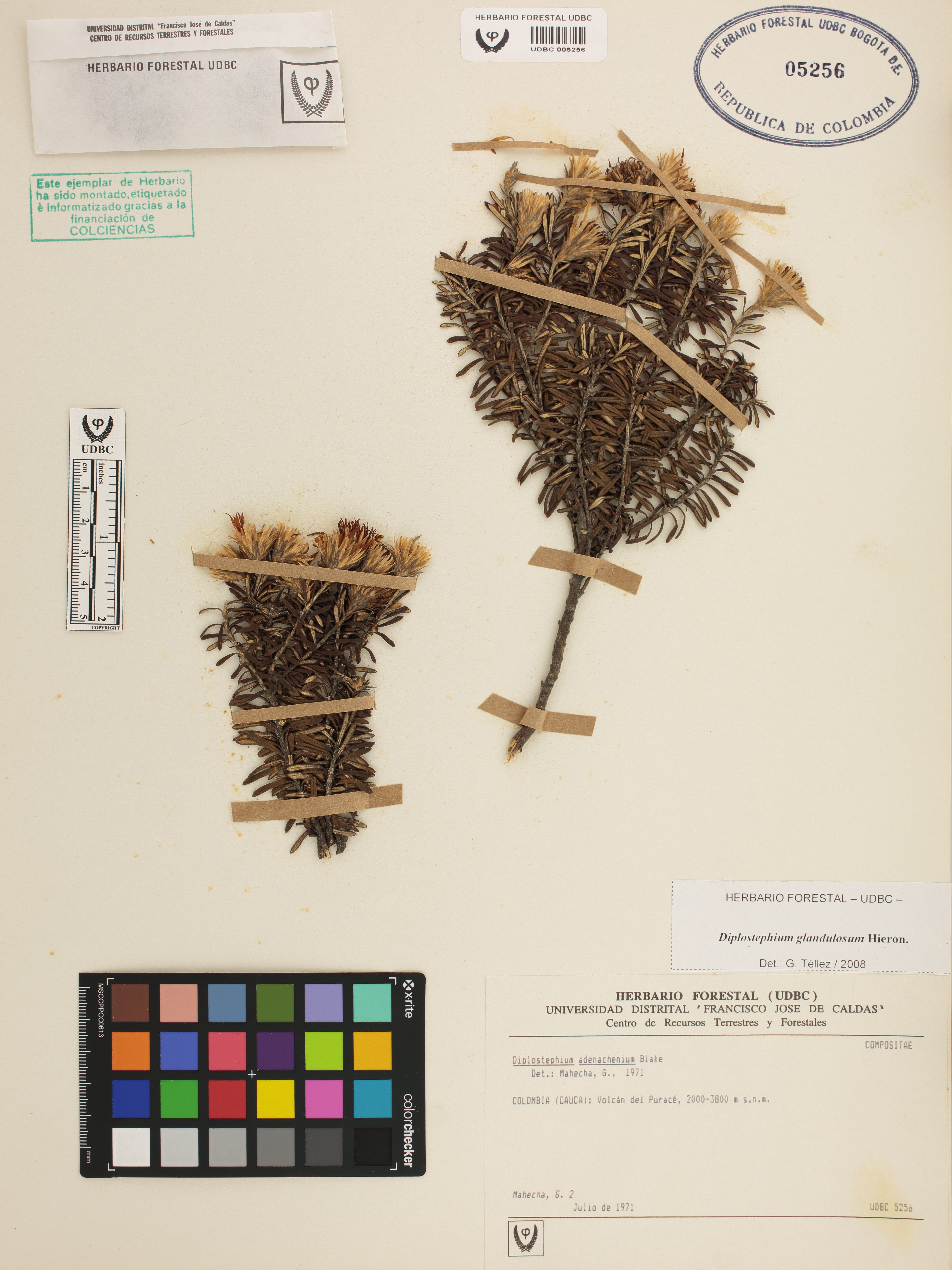 Fotografía del ejemplar Mahecha, G. 2, determinado como Diplostephium glandulosum en el año 2008