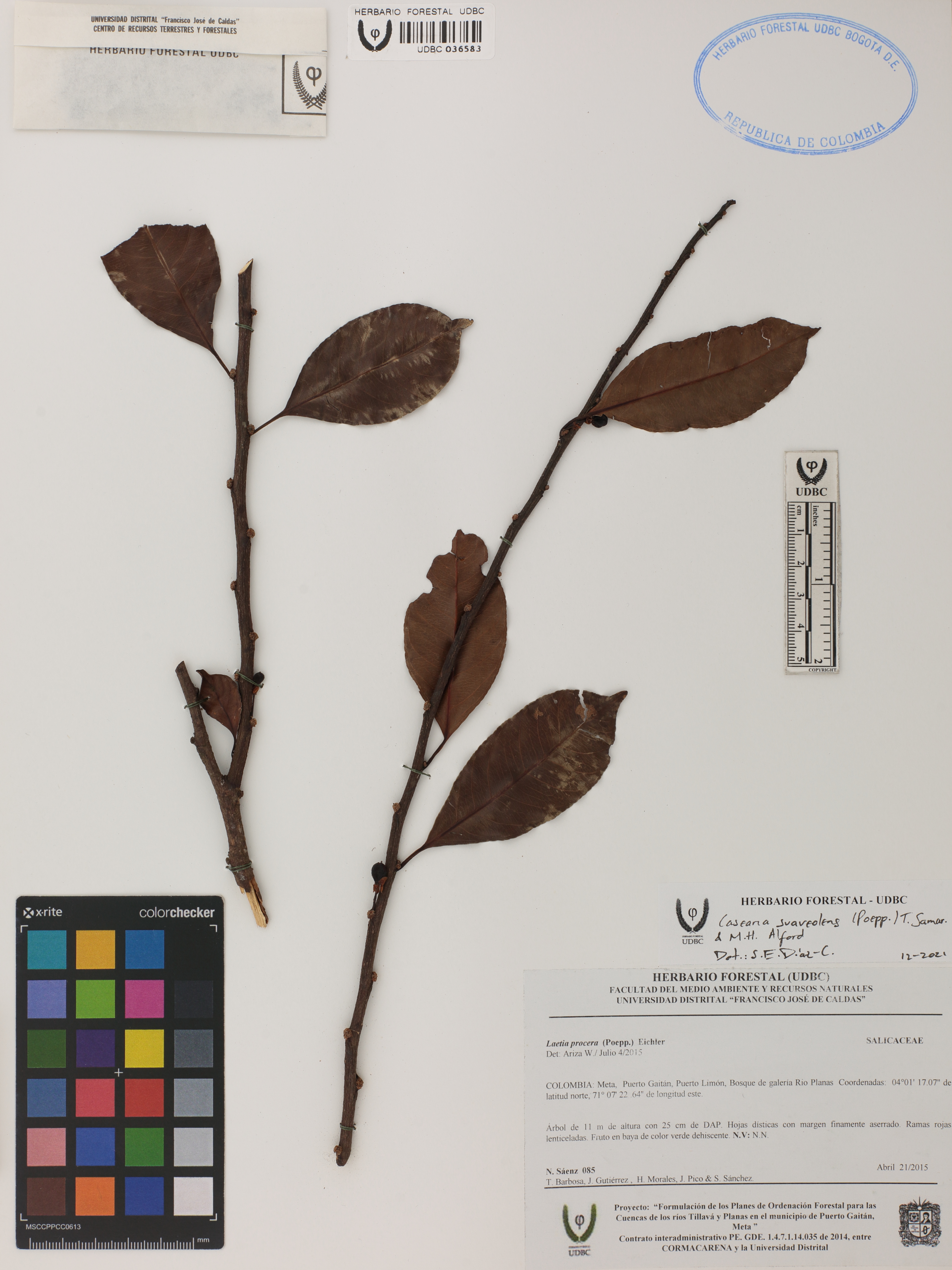 | dc.description | Fotografía del ejemplar Sáenz, N. 85, determinado como Casearia suaveolens en el año 2021 | |