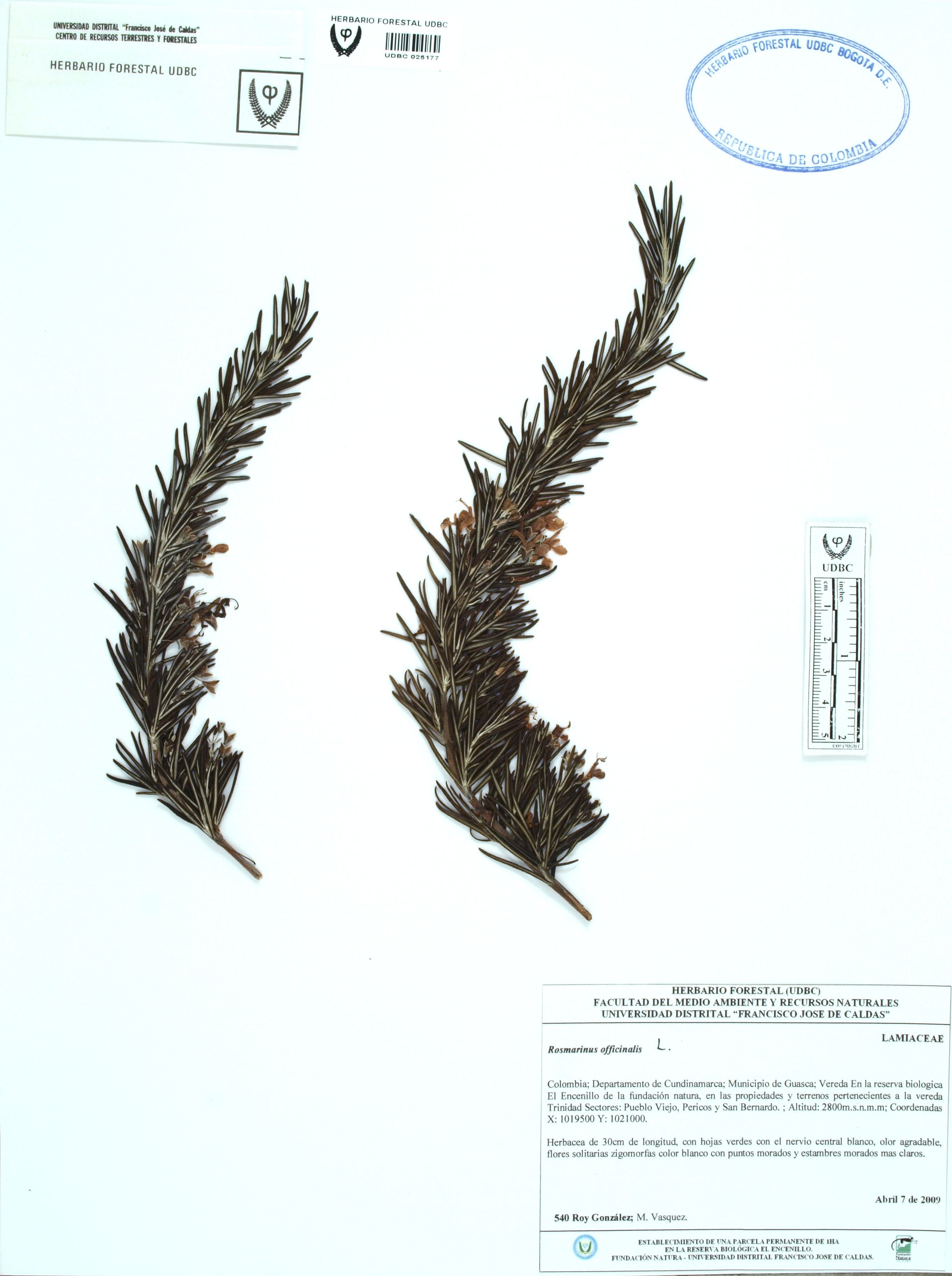 Fotografía del ejemplar González, R. 540, determinado como Rosmarinus officinalis