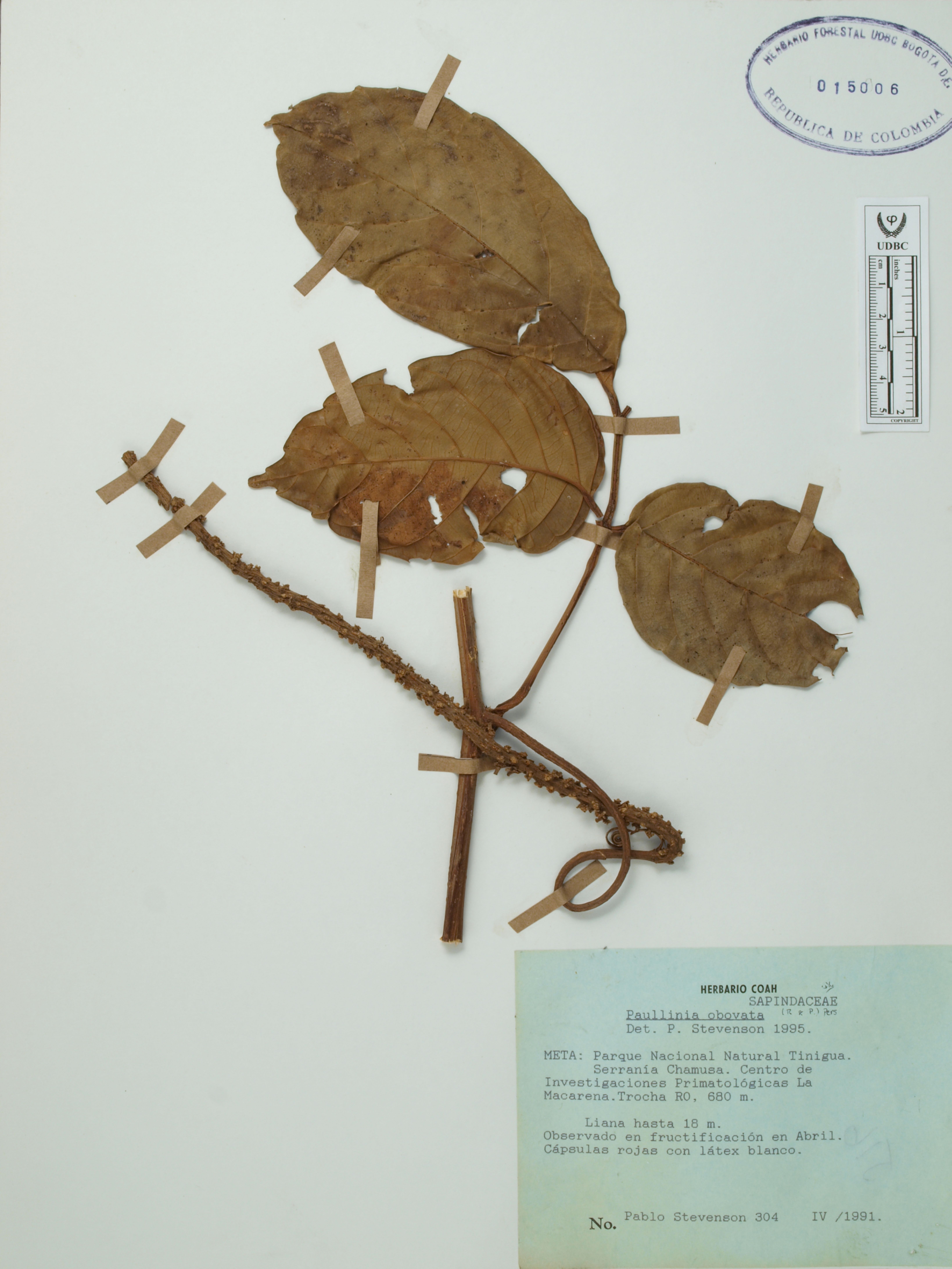 Fotografía del ejemplar Stevenson, P. 304, determinado como Paullinia obovata en el año 1995