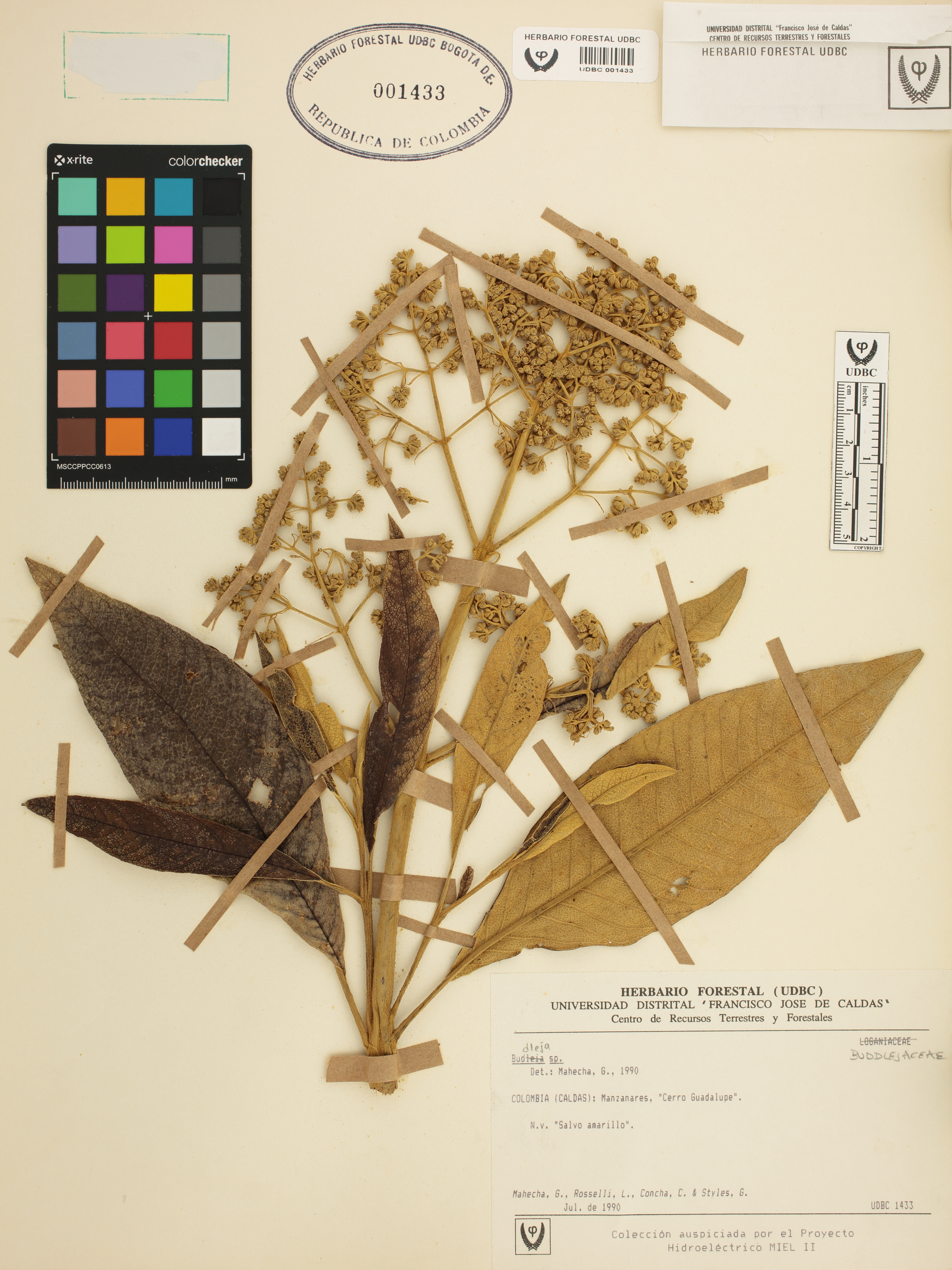 Fotografía del ejemplar Mahecha, G., determinado como Buddleja sp. en el año 1990