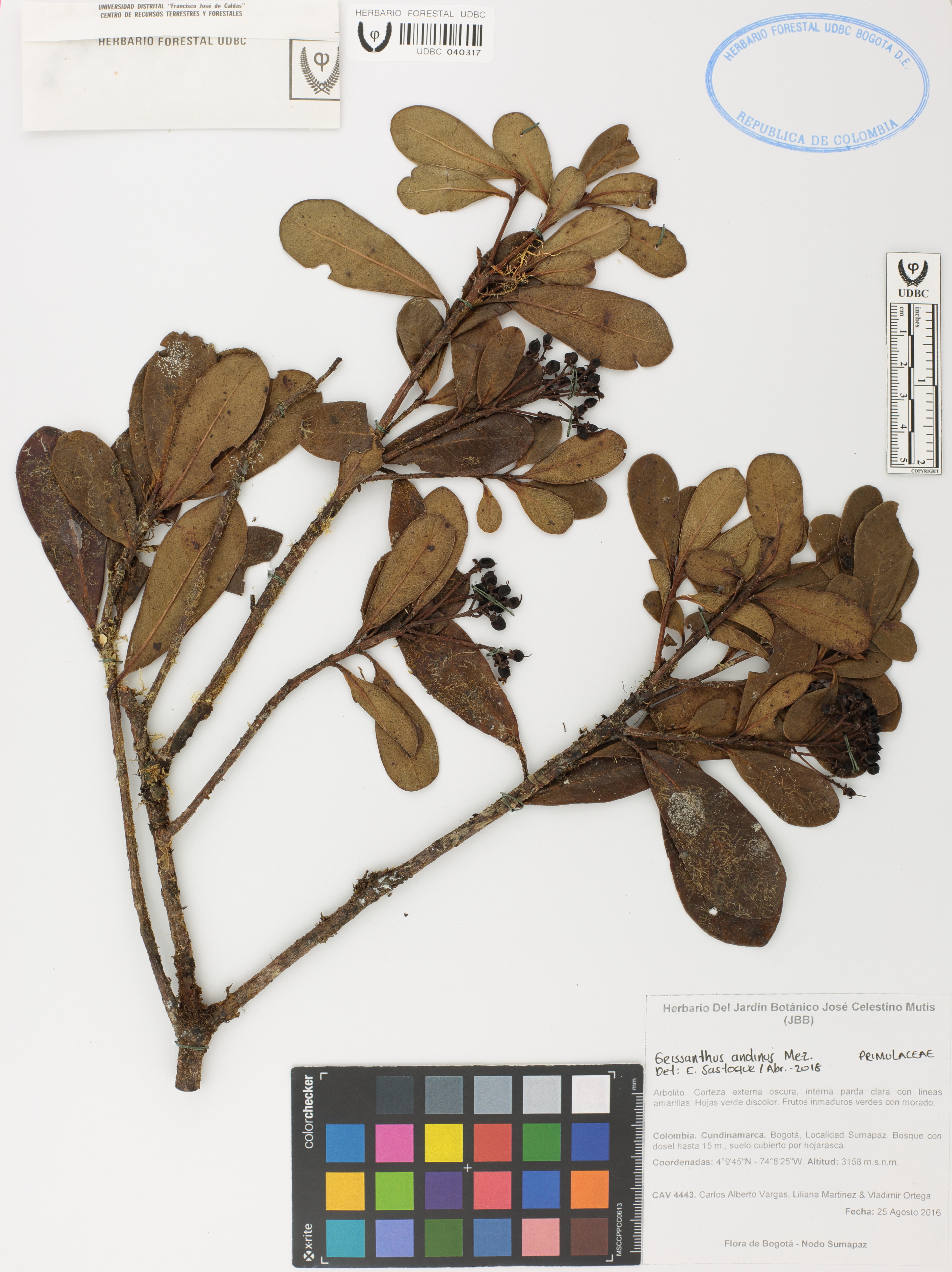 Fotografía del ejemplar Vargas, C. 4443, determinado como Geissanthus andinus en el año 2018