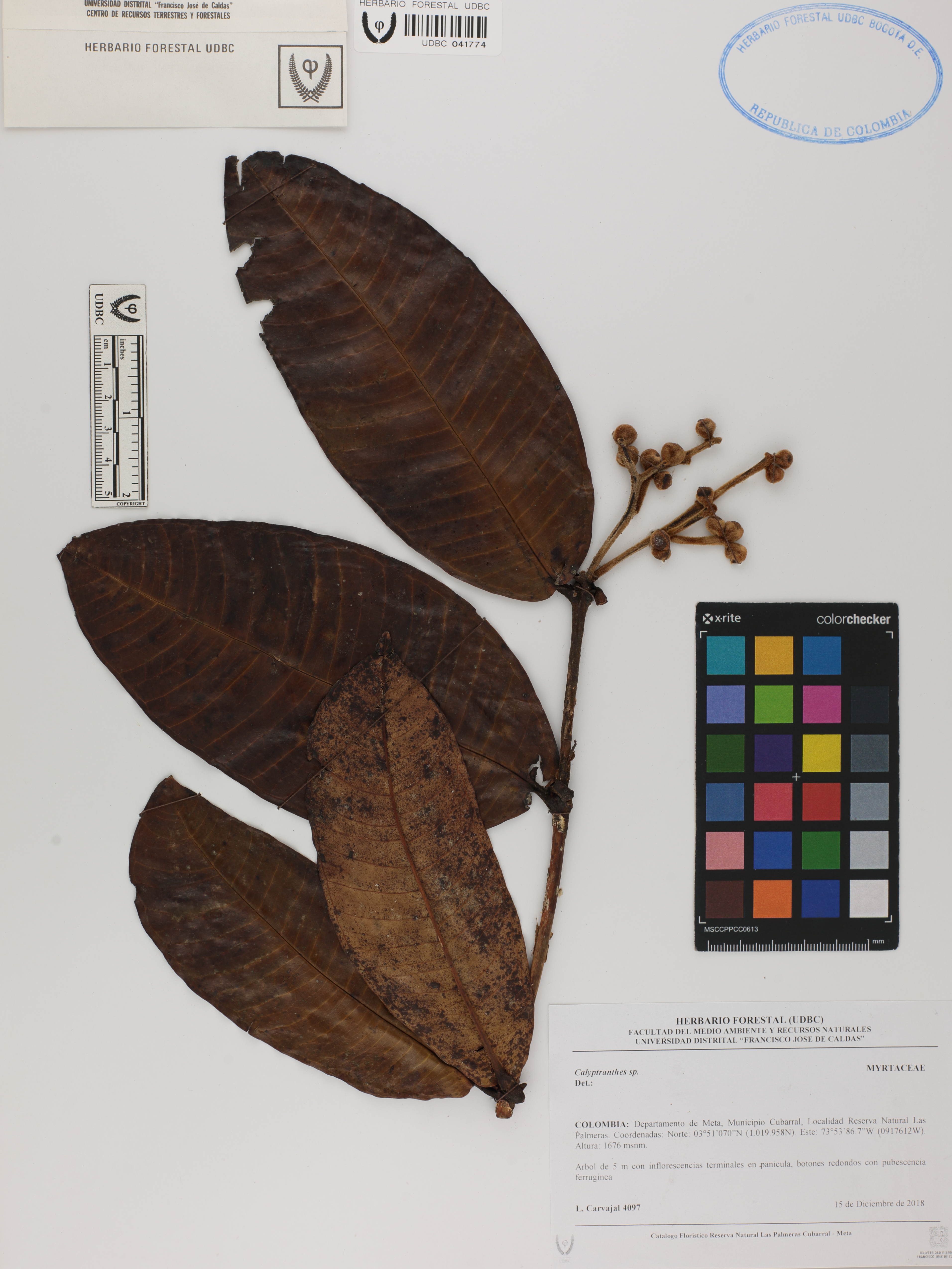 Fotografía del ejemplar Carvajal, L. 4097, determinado como Calyptranthes sp.