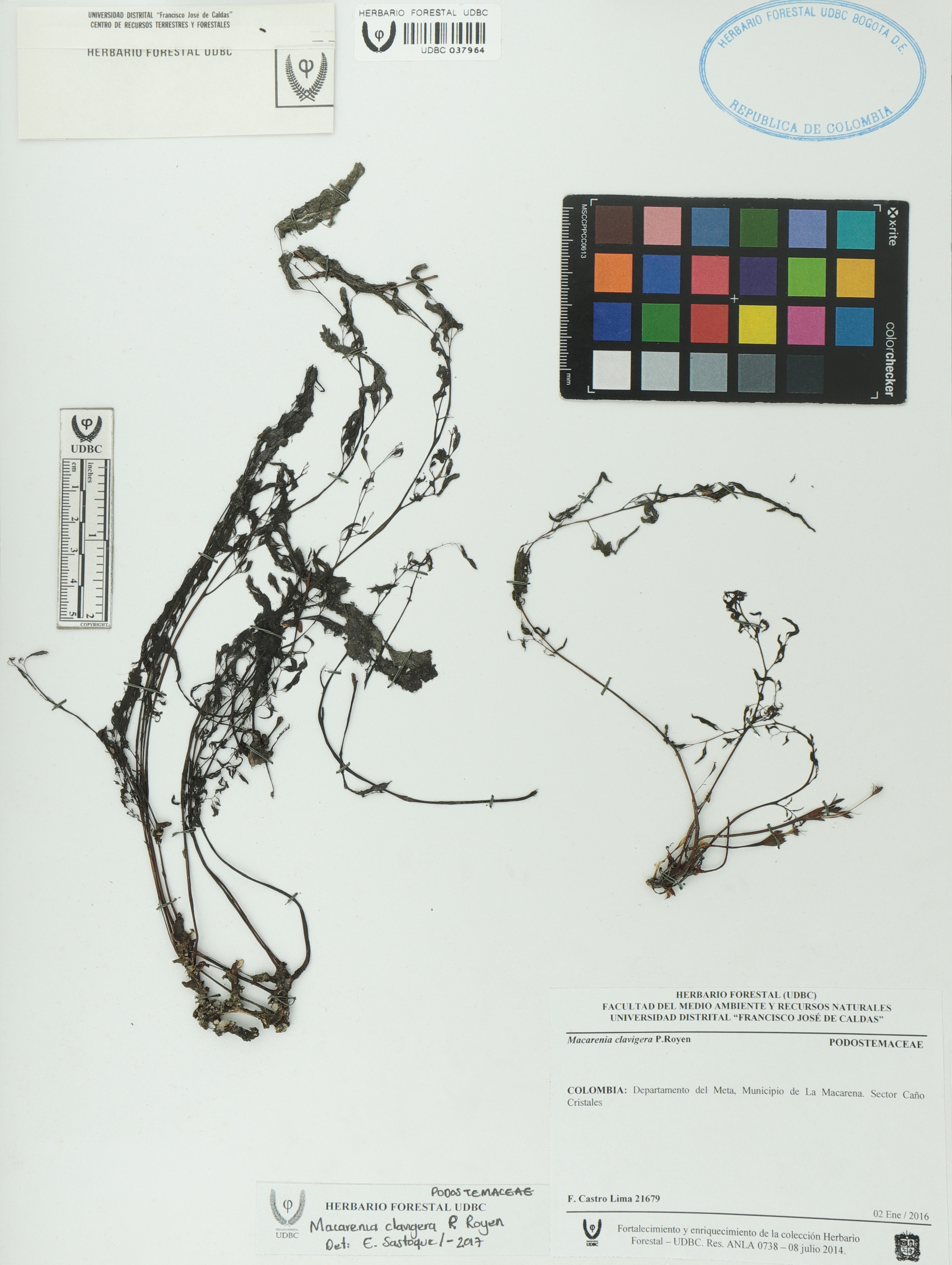 Fotografía del ejemplar Castro, F. 21679, determinado como Macarenia clavigera en el año 2017