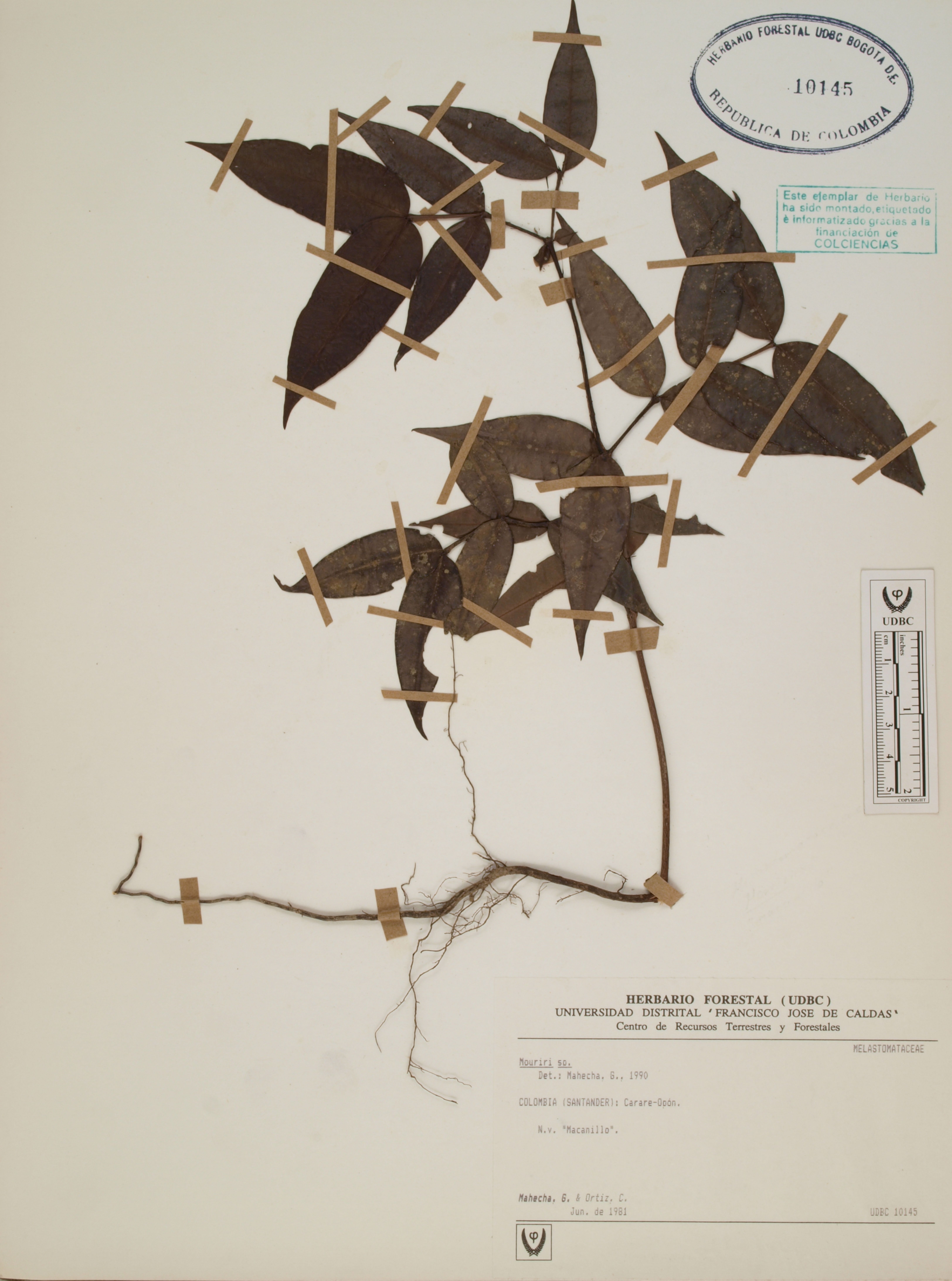 Fotografía del ejemplar Mahecha, G., determinado como Mouriri sp. en el año 1990