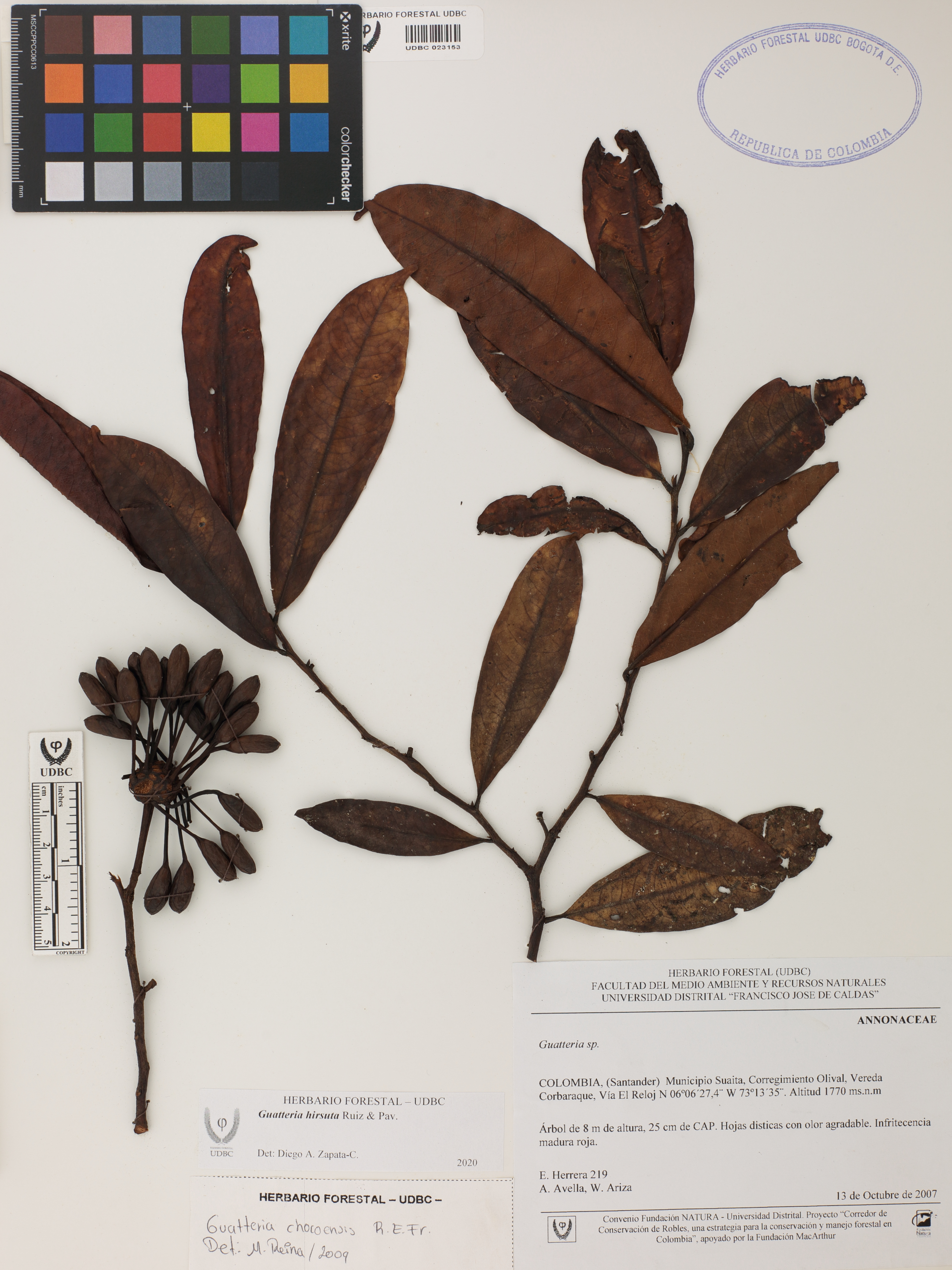 Fotografía del ejemplar Herrera, E. 219, determinado como Guatteria hirsuta en el año 2020