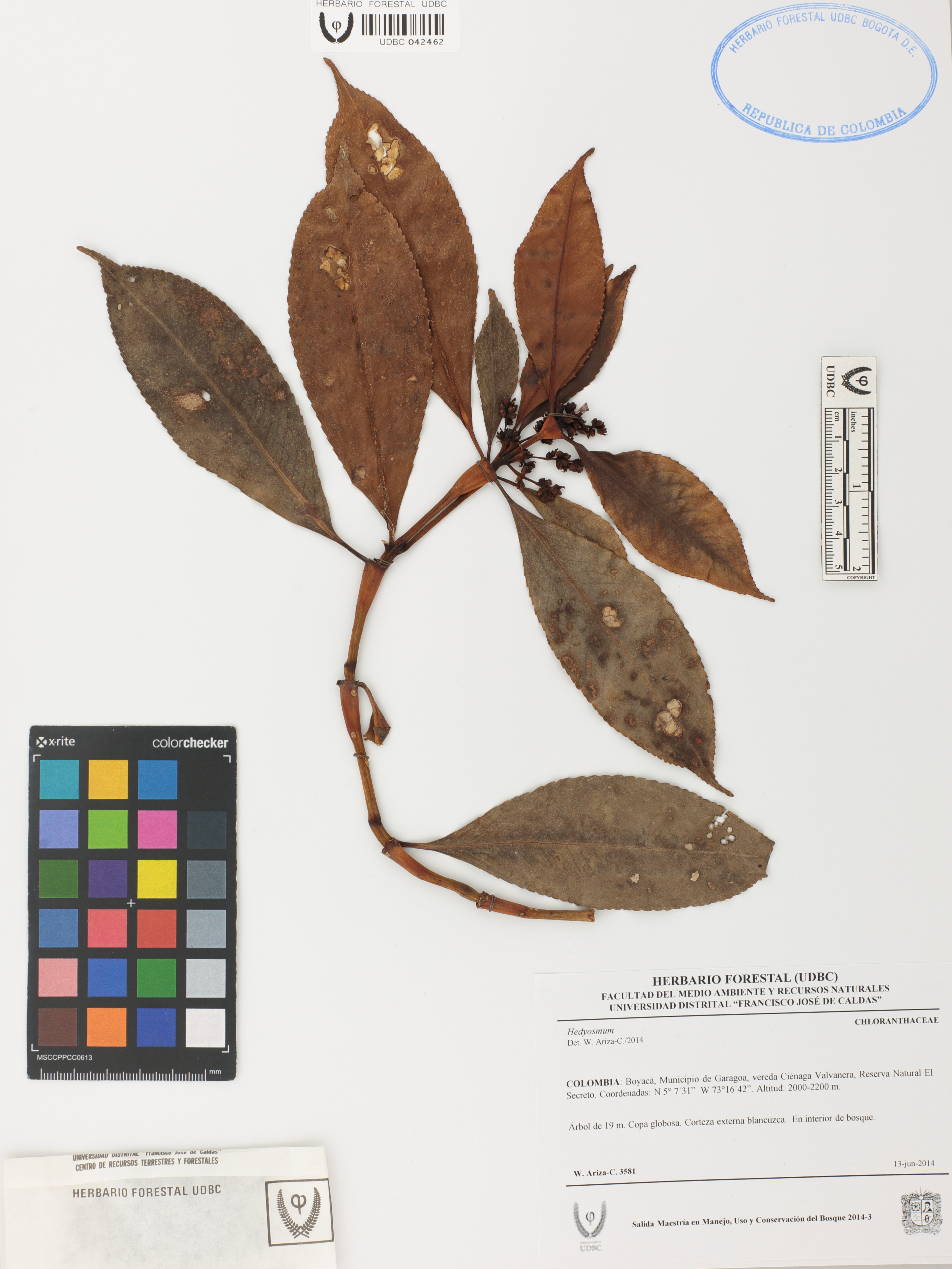 Fotografía del ejemplar Ariza-C., W. 3581, determinado como Hedyosmum sp. en el año 2014