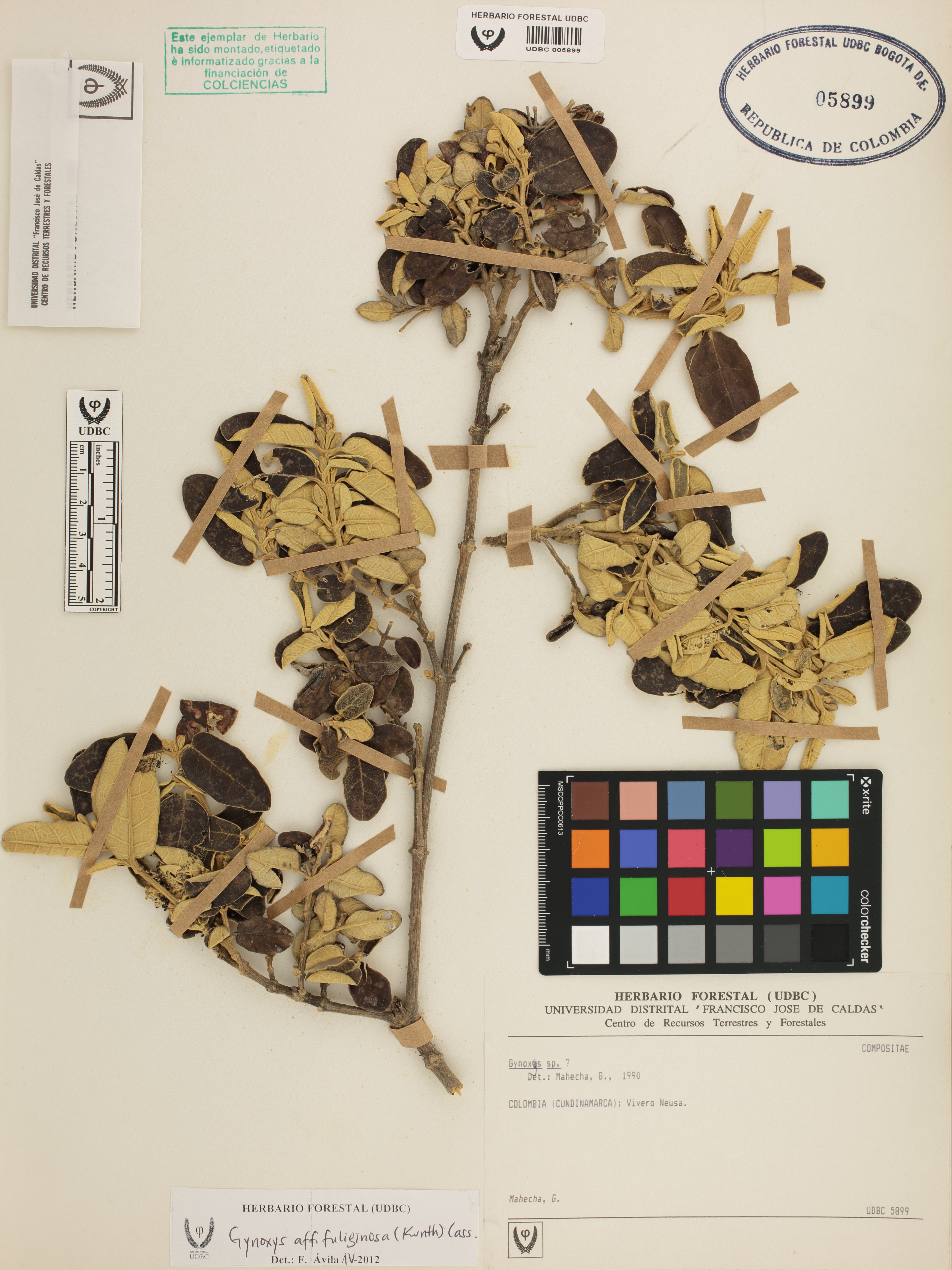 Fotografía del ejemplar Mahecha, G., determinado como Gynoxys fuliginosa en el año 2012