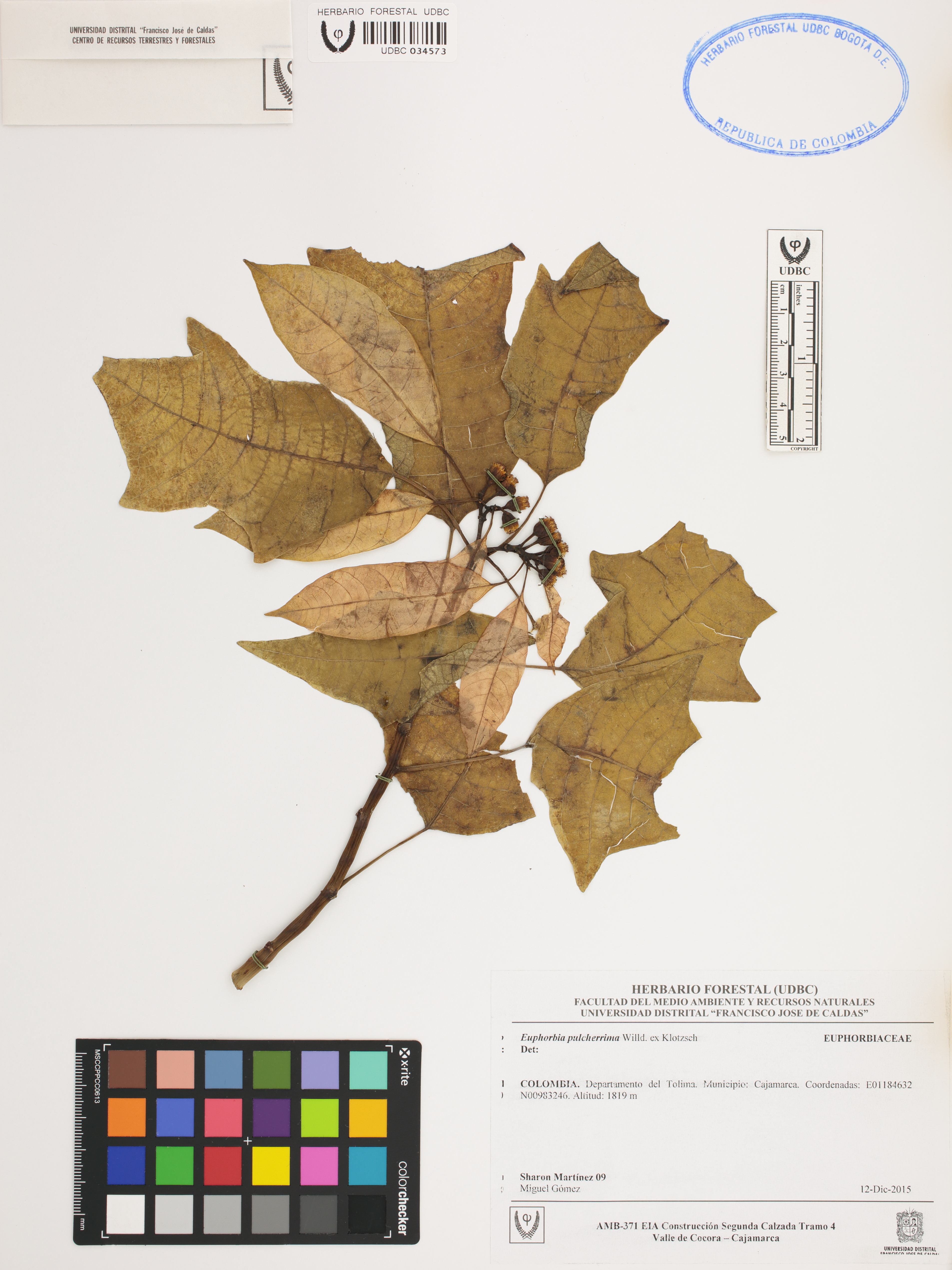 Fotografía del ejemplar Martínez, S. 9, determinado como Euphorbia pulcherrima