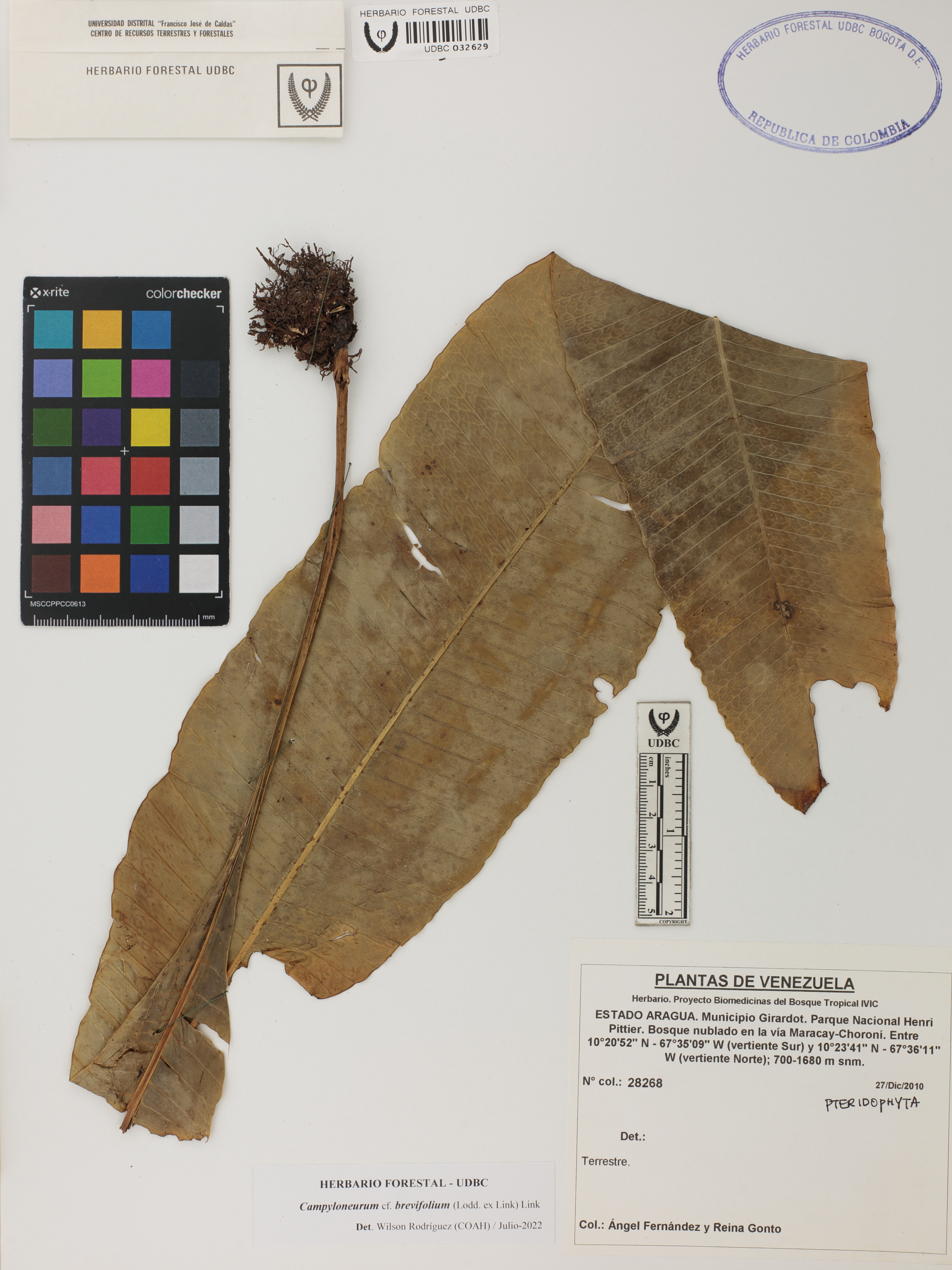 Fotografía del ejemplar Fernández, A. 28268, determinado como Campyloneurum brevifolium en el año 2022