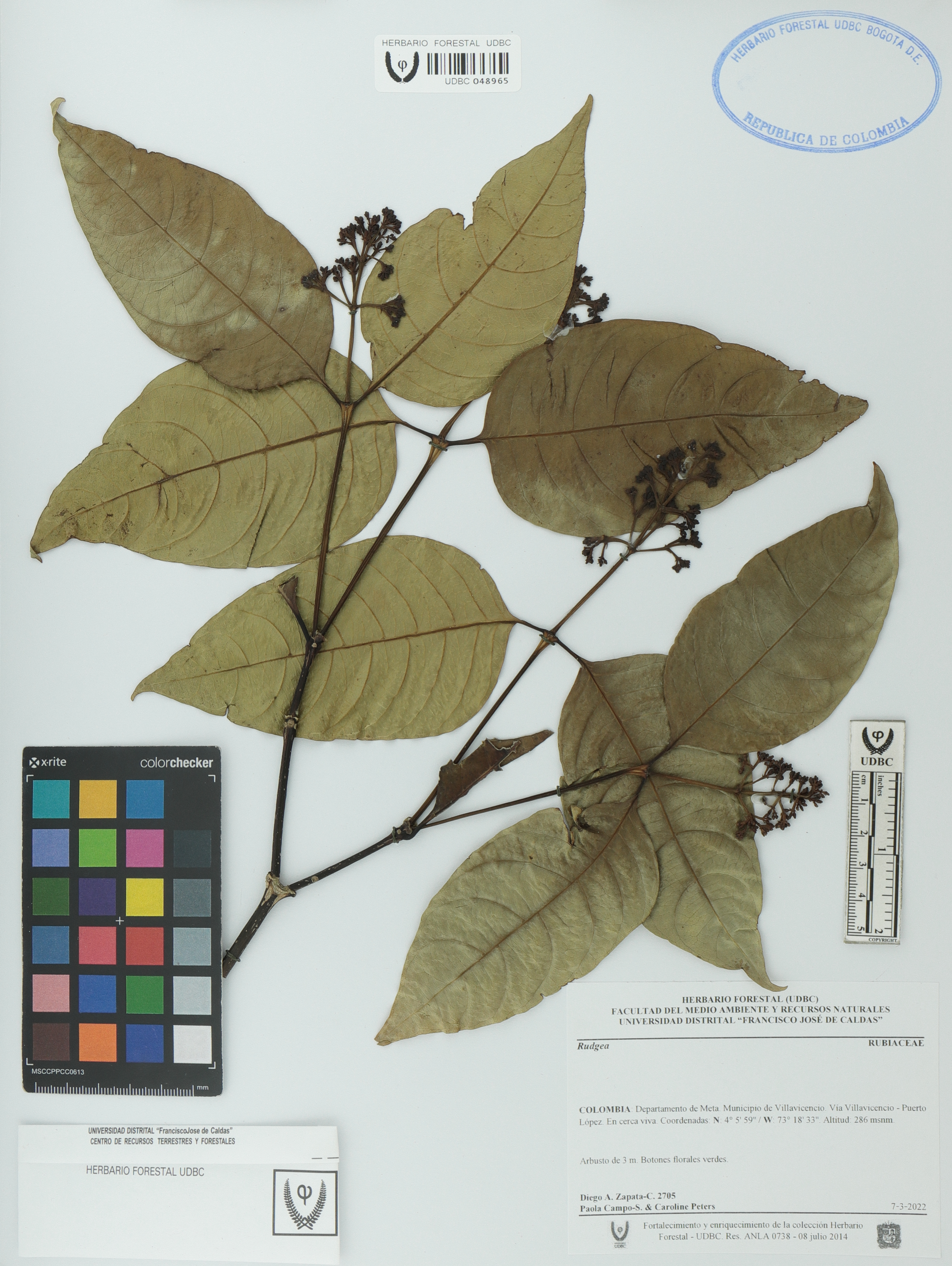 Fotografía del ejemplar Zapata-C., D. 2705, determinado como Rudgea sp.