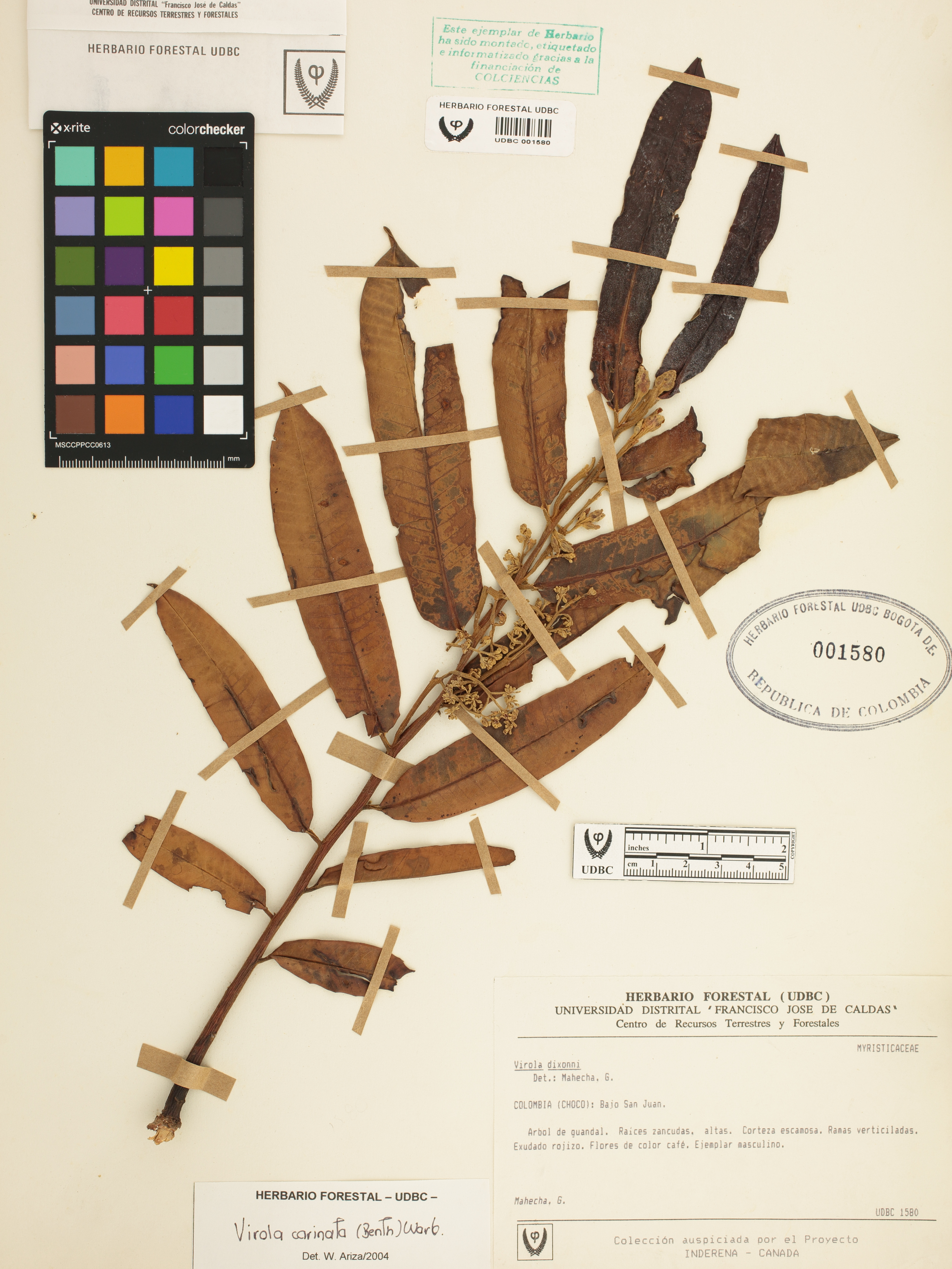 Fotografía del ejemplar Mahecha, G., determinado como Virola carinata en el año 2004