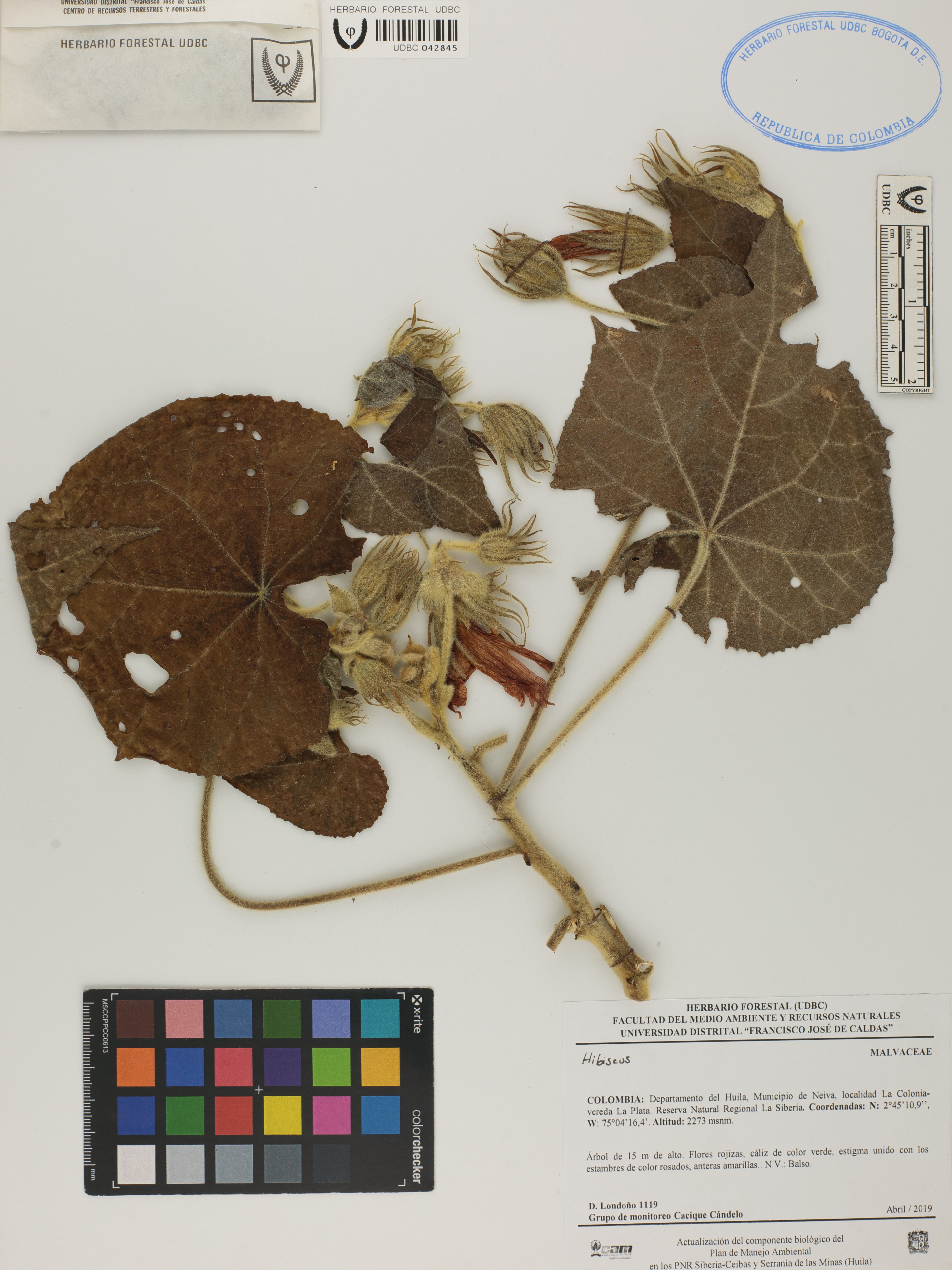 Fotografía del ejemplar Londoño, D. 1119, determinado como Hibiscus sp.