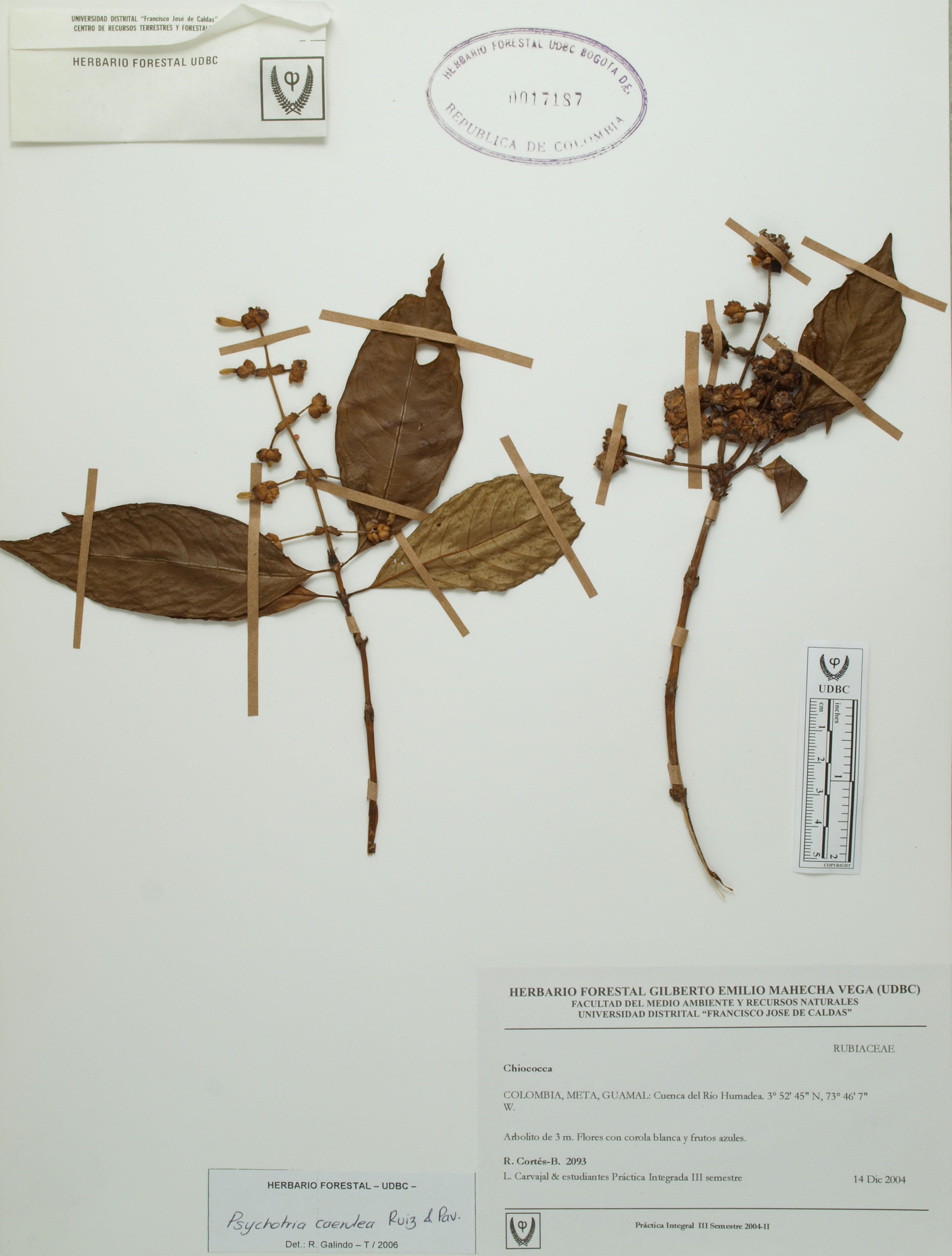 Fotografía del ejemplar Cortés-B., R. 2093, determinado como Palicourea caerulea en el año 2006
